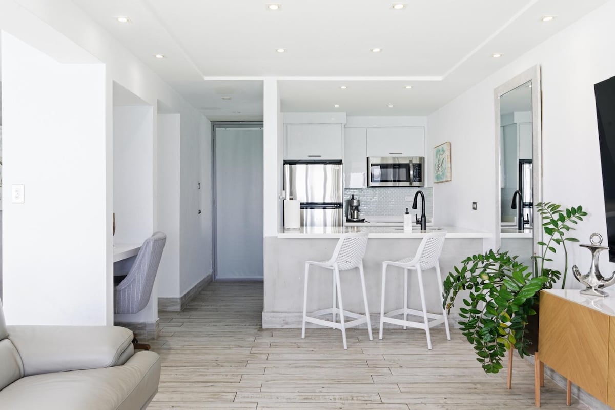 Blanco is our gorgeous and modern one bedroom condo fully decorated all white. Located in the heart of Isla Verde right by the beach. The apartment is very unique due to how it is decorated. You will feel in a very cozy & modern space. Wether you are here for pleasure or business Blanc will be the perfect place. You will enjoy the city views and partial view of the ocean while you relax in the spacious balcony. The beach is our backyard just steps away from the elevator.