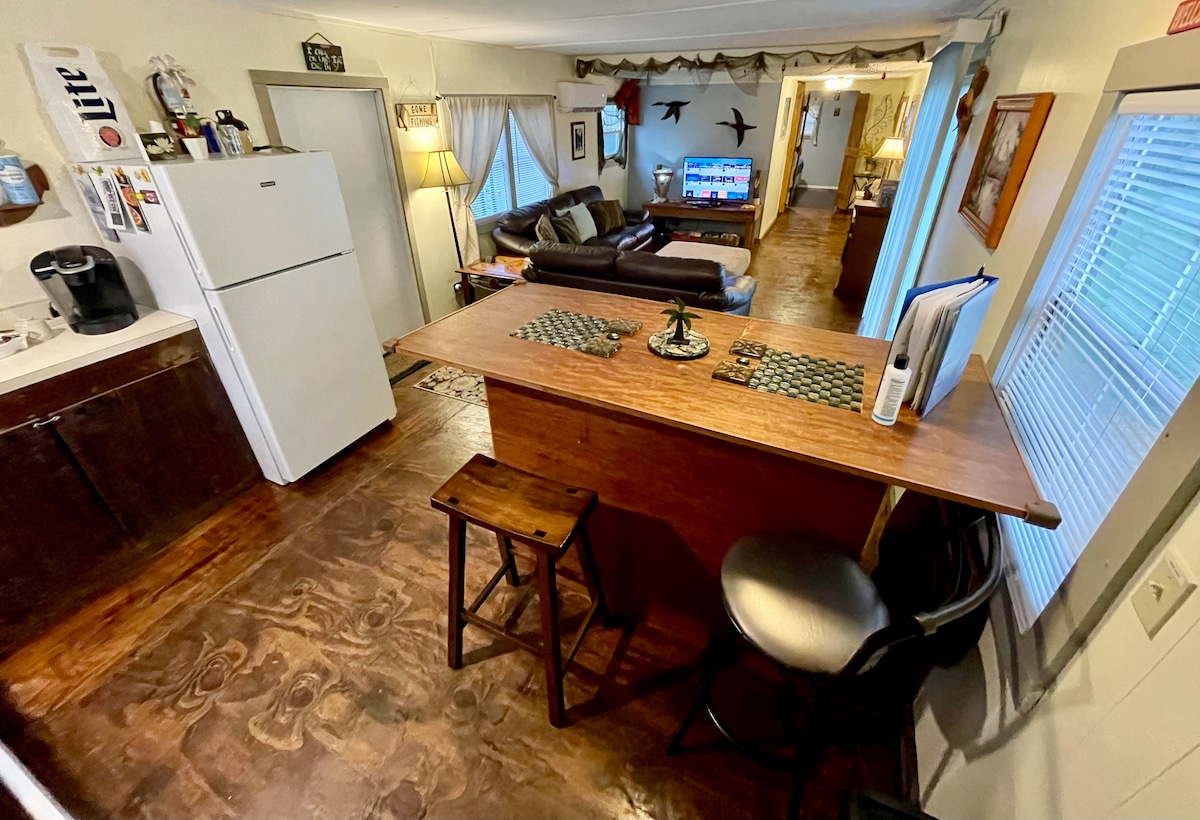 Welcome to The Hooch! Enjoy a memorable visit in this unique, fishing themed house. This 70’s mobile home brings you back to when people retired to Florida to have easy access to the Ocklawaha River, Ocala National Forest & Silver Spings. A great location for the adventure seekers of this generation too! Located 1/2 mile to boat ramp, fishing pier, canoe rentals and just a couple miles to hiking, ATV/OHV/Jeep trails. 11 miles to Salt Springs swim area, close to Rodman, St. John’s, Orange Lake.