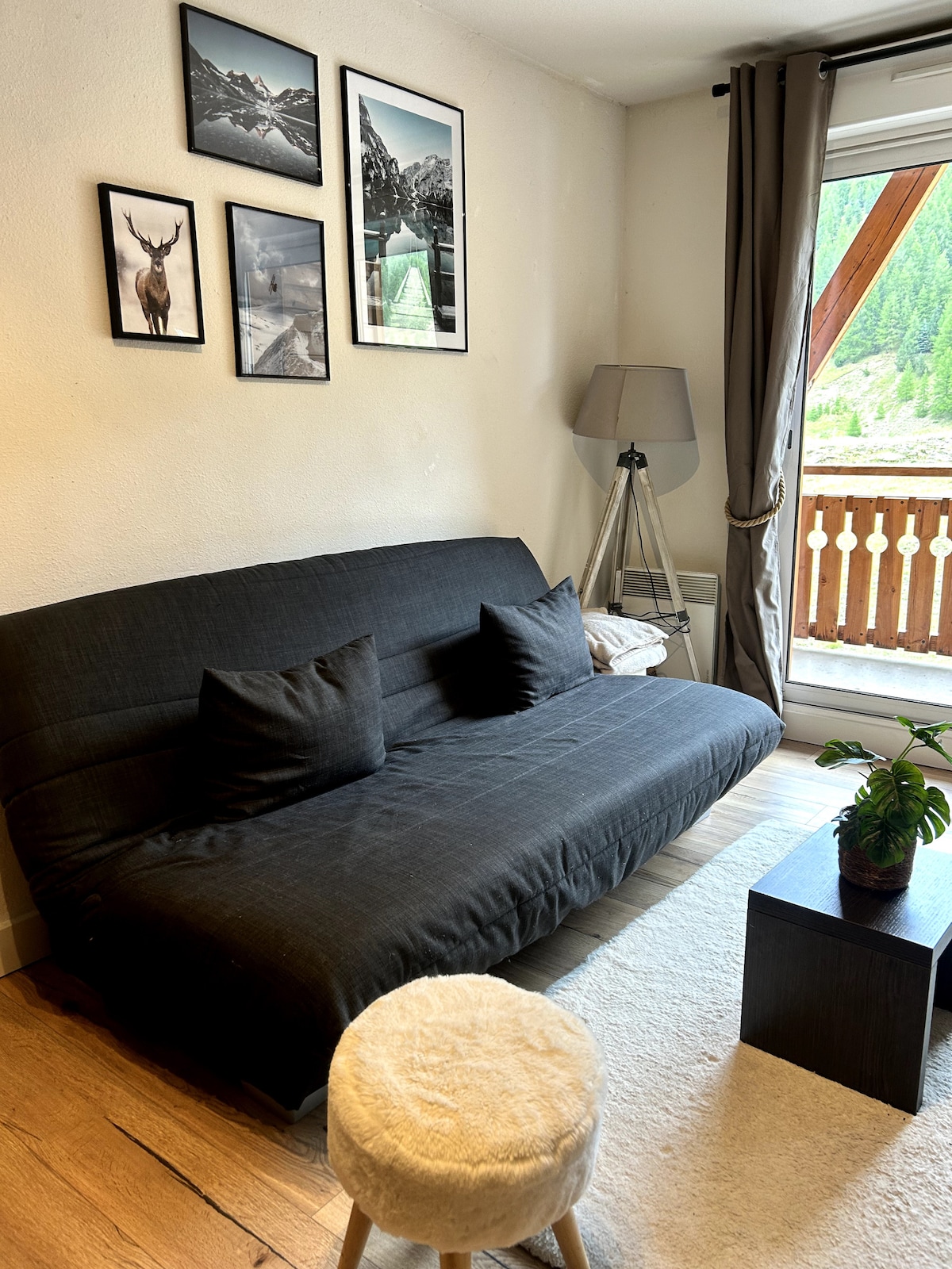 2-room apartment on the 3rd floor, quiet, a beautiful mountain view and perfectly equipped in a luxury residence with a magnificent swimming pool Linens for beds and towels provided. Two raclette and waffle services are available, as well as board games and petanque balls for the summer. There is a TV with Wi-Fi in the living room and a TV in the bedroom. Ski and shoe lockers are in the entrance hallway.
