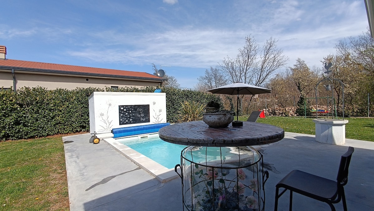 Relax and Unwind in this Spacious and Tranquil Holiday Home. Discover the magic of Eastern Istria in this charming holiday home, nestled in a small village near Labin. Built in 2021, this fully equipped home offers everything you need for a peaceful and comfortable stay. With ample parking right in front, a refreshing pool just steps from the living room, and serene surroundings, it’s the perfect place to unwind.