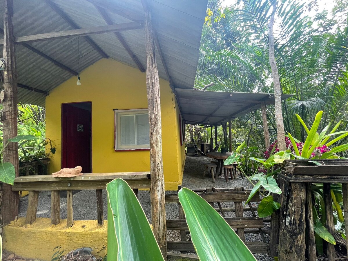 Exclusive bungalow and kitchen located 5 km after Serra Grande towards Itacaré, on a small farm embraced by the Atlantic Forest and close to the best beaches in the region (Itacarezinho 7 km/Pé de Serra 5 km). One of the few places in the countryside with fiber Wi-Fi allowing remote work. Close enough to markets and restaurants and far enough away to offer a shelter from noise and overcrowding. You will have exclusive access to the entire site, trails, riverside deck.