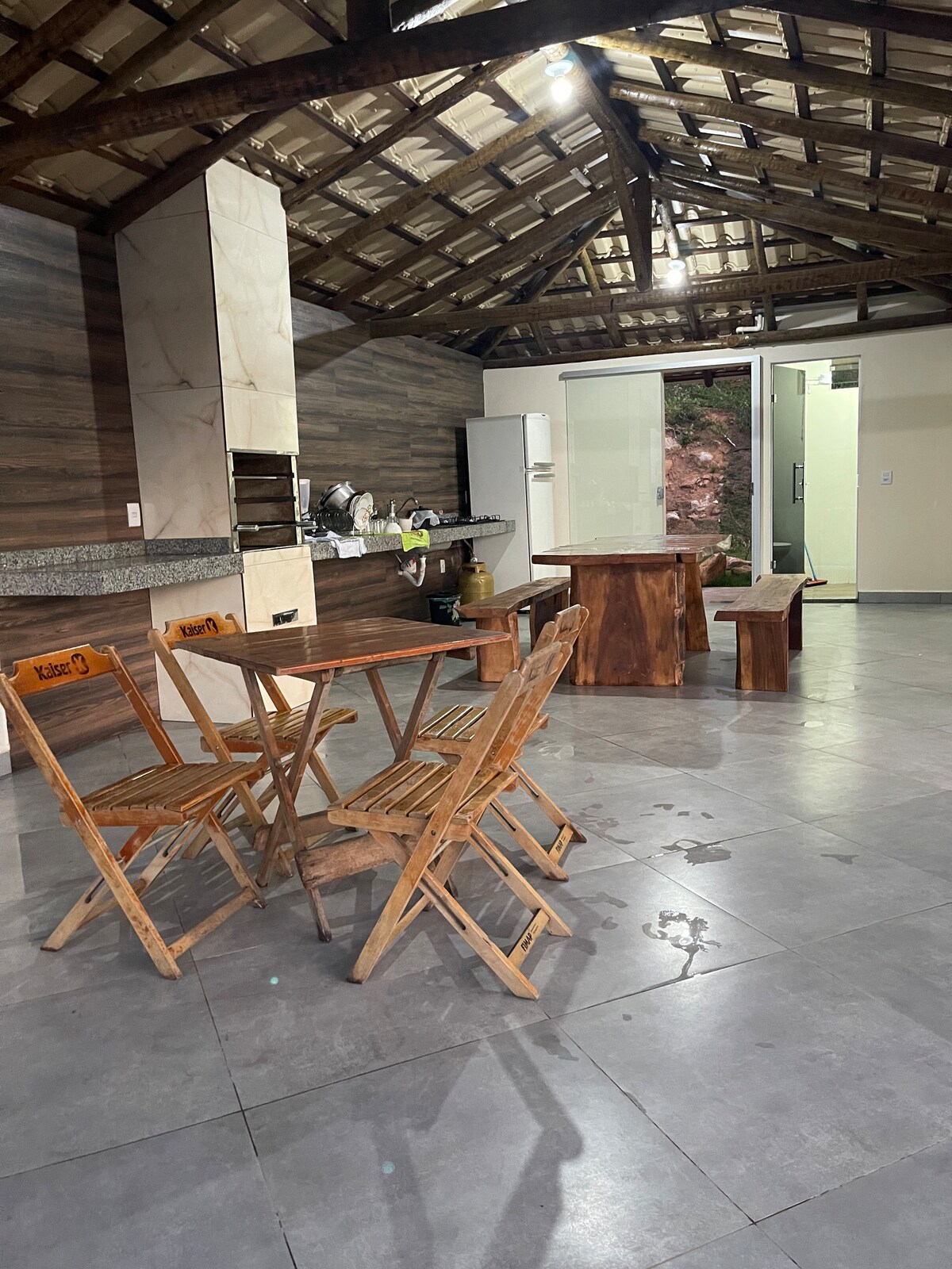 Recanto J&J – Itaguara, Minas Gerais Quiet and cozy house for family rest days. Accommodates up to 6 people, with 2 bedrooms, extra bedroom, sofa bed and 1 bathroom. Balcony with wood stove and barbecue grill. Outdoor area with Jacuzzi, pergola, playground and double swing. Wi-Fi and pets welcome. Ideal for relaxing and creating good memories. Check availability!