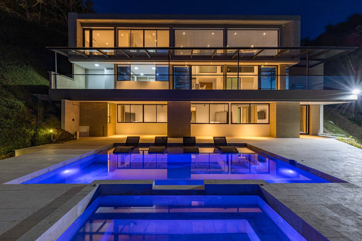 Enjoy an exclusive experience in Palmas in a luxury house surrounded by nature, with a panoramic view of Medellín. Enjoy its heated pool with an infinite horizon, open cinema with surround sound, fully equipped kitchen, terrace and multiple rest areas next to a private forest. With 3 en-suite bedrooms and elegant design, it is the ideal place for those looking for comfort, privacy and a unique atmosphere to share with family or friends.