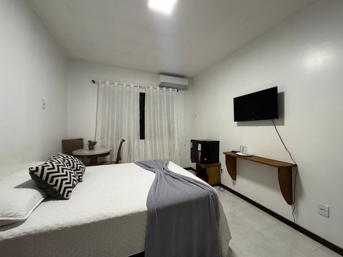 Wake up just steps from the beach in this thoughtfully designed compact loft, located in one of the most exclusive neighborhoods in southern Brazil. Ideal for couples, it features a comfortable double bed, a spacious high-pressure shower, microwave, frigobar, mini cooktop, air-conditioner, TV, water filter, fan, and a dedicated work-station. Smart under-bed storage keeps luggage and gear neatly out of the way for a relaxed, clutter-free stay.