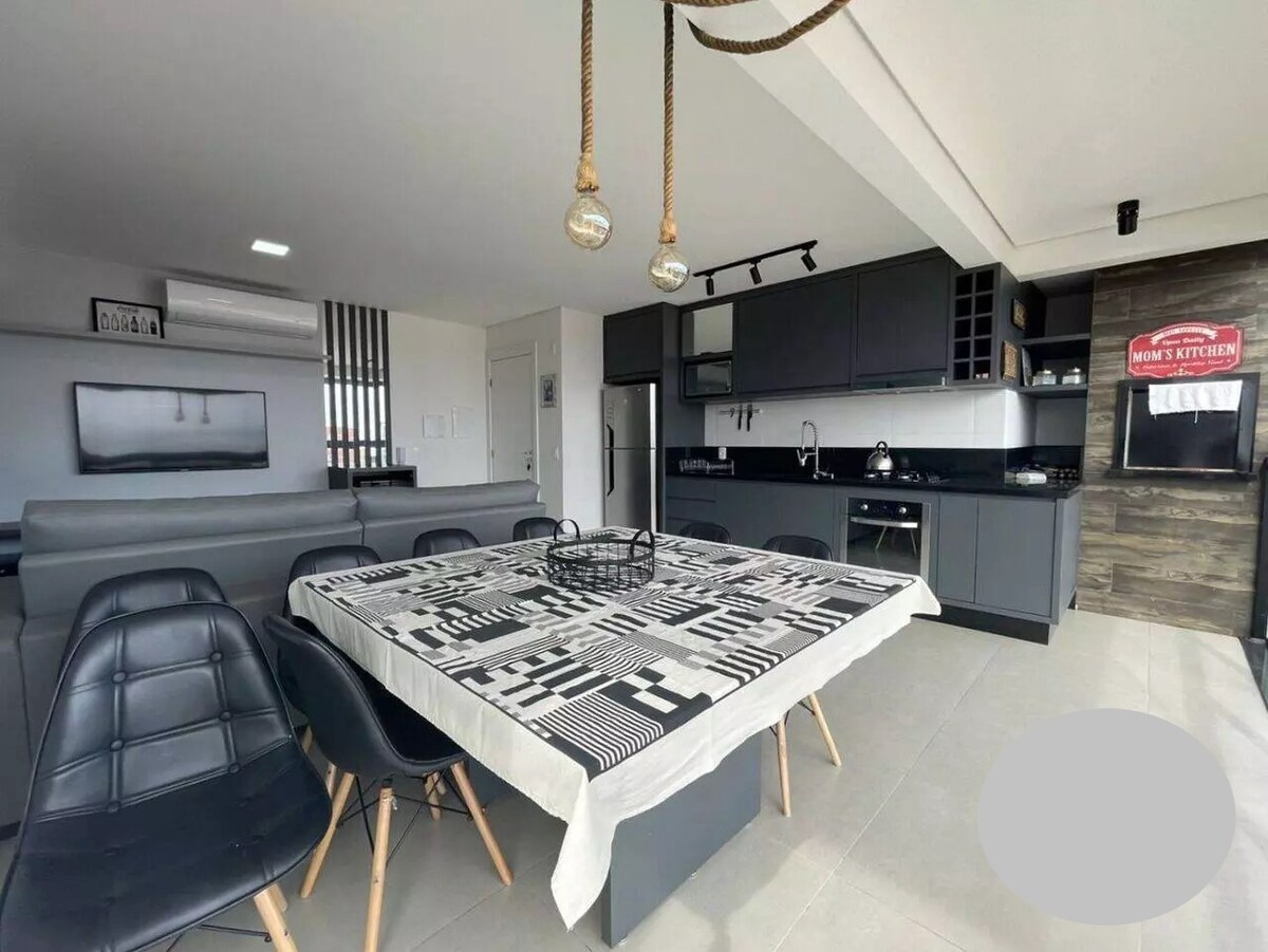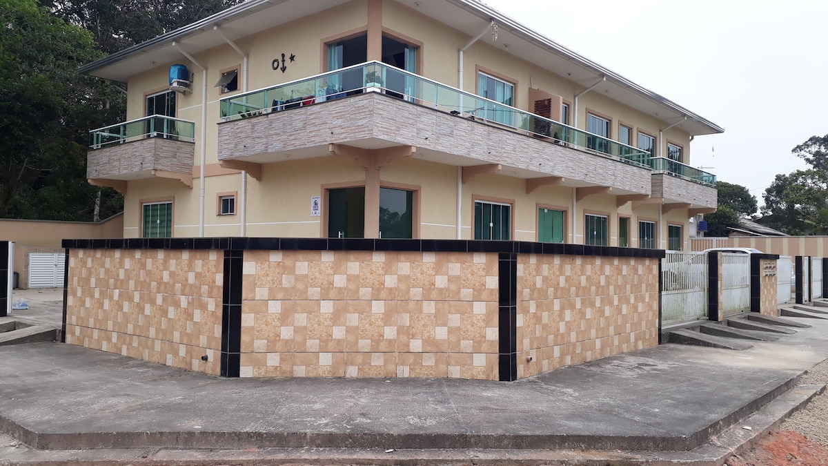 Entire apartment located 700 meters from the sea on a quiet, wooded street. Only 3 km from Itapema do Norte, where the largest movement of people and businesses is concentrated. The apartment is new, along with its furnishings. Kitchen with all utensils, barbecue, SmartTV cable, Wi-Fi with 100 megabytes of speed and other amenities for the main guest and his family to feel at home. Guests need to bring their own bed and bath linens. We offer a beach chair.