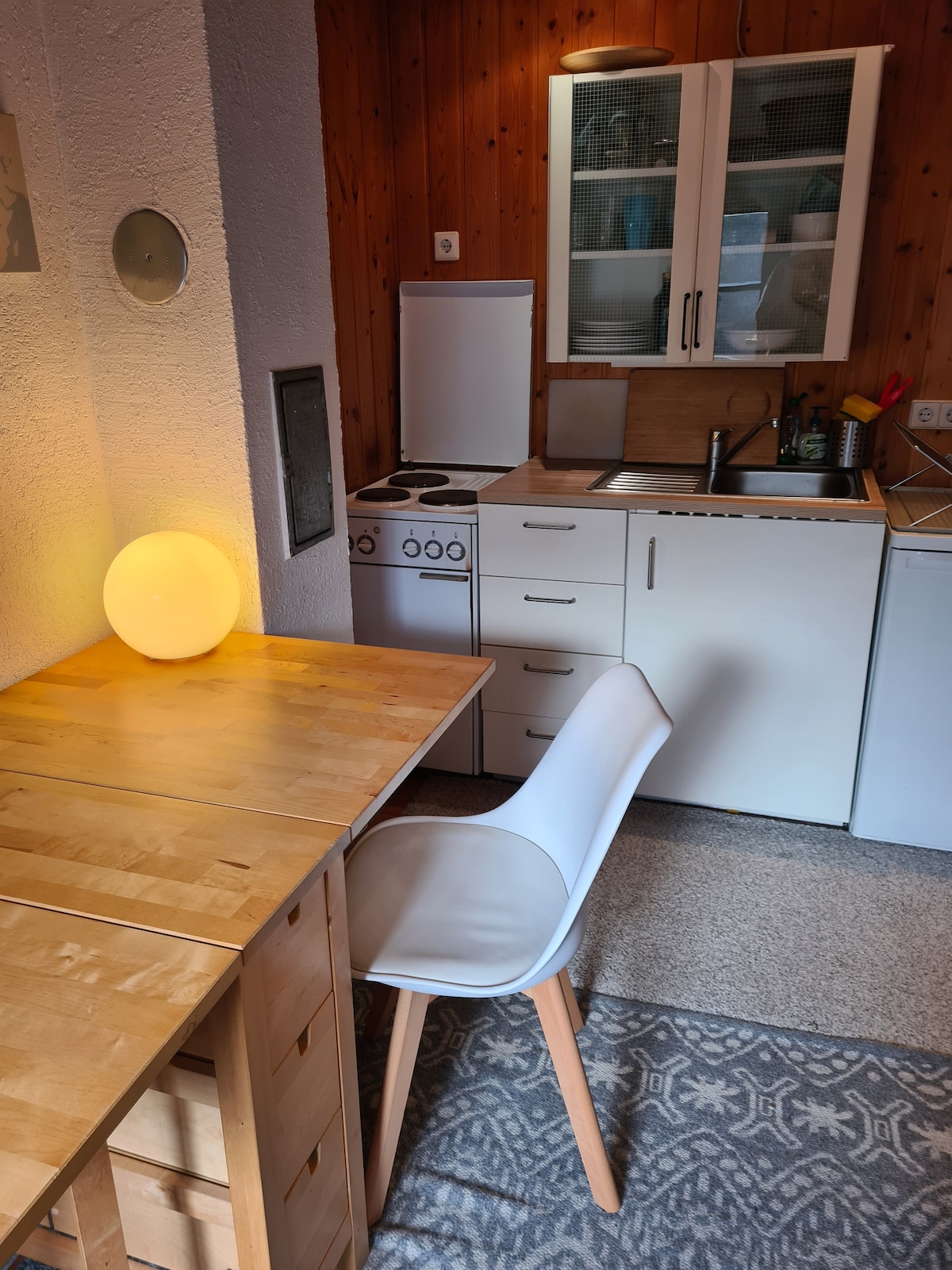 Our vacation home is about 55 square meters with up to 5 sleeping places. Max. 2 parking spaces Adjacent to the stable/paddock. Open living area with living room, TV, Wi-Fi, fireplace, dining room, kitchen and bathroom. Kitchen, stove, oven, fridge/freezer, coffee maker and kettle. Board games for a cozy game night are provided. Towels and linens are provided. It is about 1.5 km to the local outdoor pool.