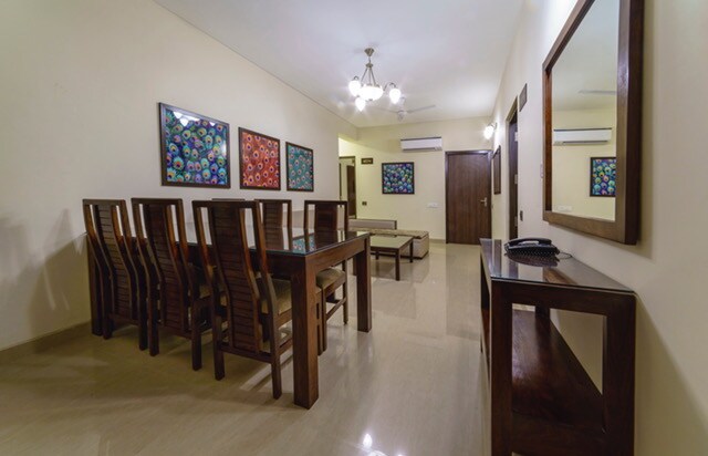 We have set of 3 serviced apartment on seventh floor, three set of two bhk apartments. Each apartment has its own living, dinning and other common areas, this whole floor has 6 well appointed best in class rooms. Our place is Just 5 mins drive from Jaipur International airport. it's a beautifully designed and elegantly decorated place ensures comfortable stay with complimentary services like , Parking, WiFi, front desk service and power back-up.