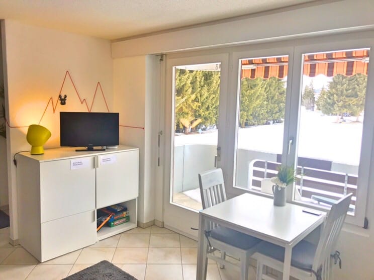 4/7/26 to 8/31/26 reduced price, as construction noise is to be expected. Balconies are being renovated and the facade insulated. Thank you for your understanding. The apartment is lovingly decorated, very centrally located and offers everything you need for a cozy life in the mountains. The bright living room with large windows lets in a lot of daylight and offers a magnificent view of the surrounding mountains. A sunny balcony with outdoor table and chairs offers views of the Jakobshorn.