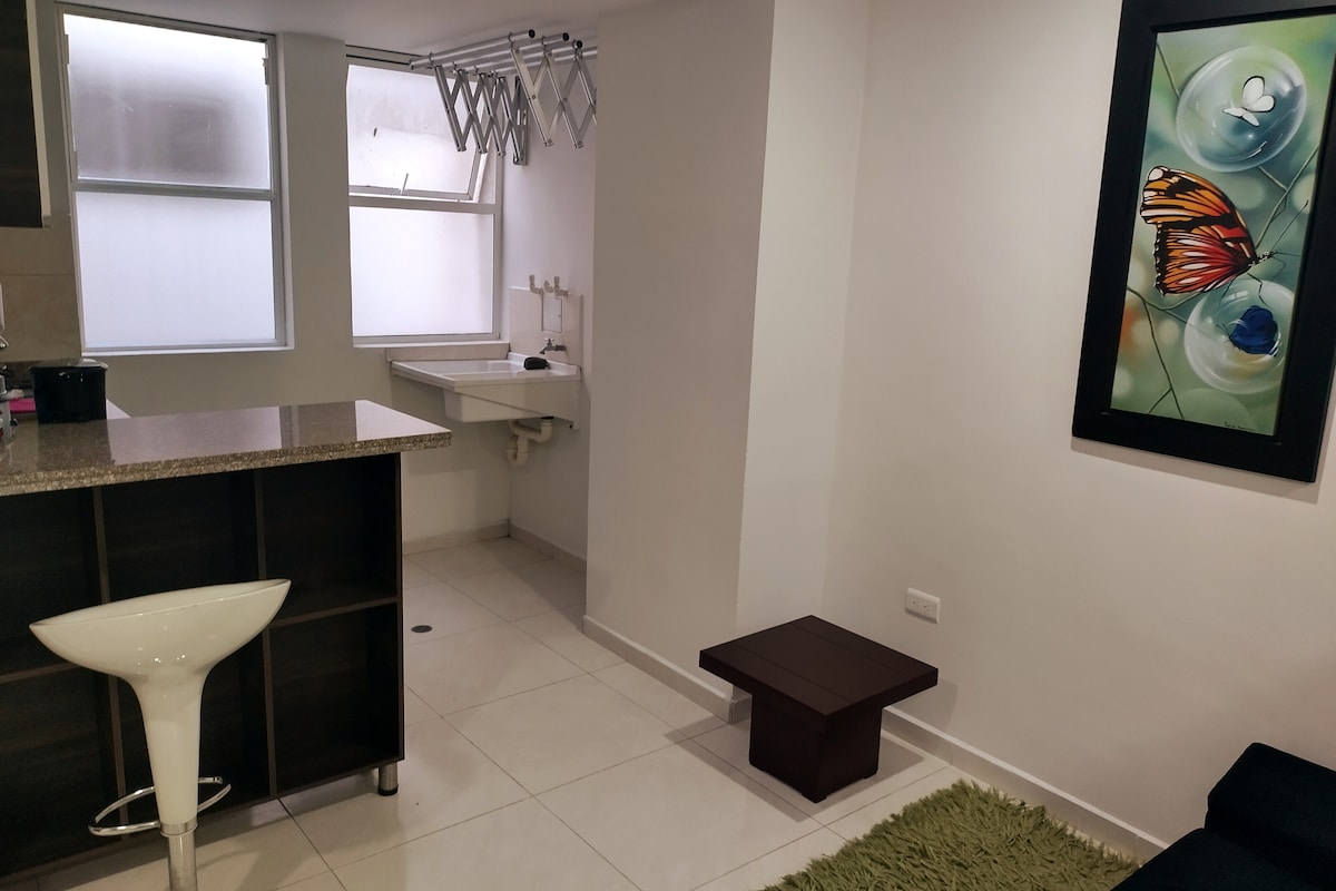Cozy new studio-apartment, delivered in February 2023, Wi-Fi 300 Mbps, Living room, Dining room, Queen bed + Sofa Bed, private washer-dryer, Play station 4, smart TV, small safe, desk with Laptop included, Terrace with outdoor furniture, free parking outside the building . One of the quietest, most exclusive and safest neighborhoods in Popayán. It is located 5 minutes from the Campanario shopping center, 15 minutes from the historic center and 15 minutes from the airport, by car.