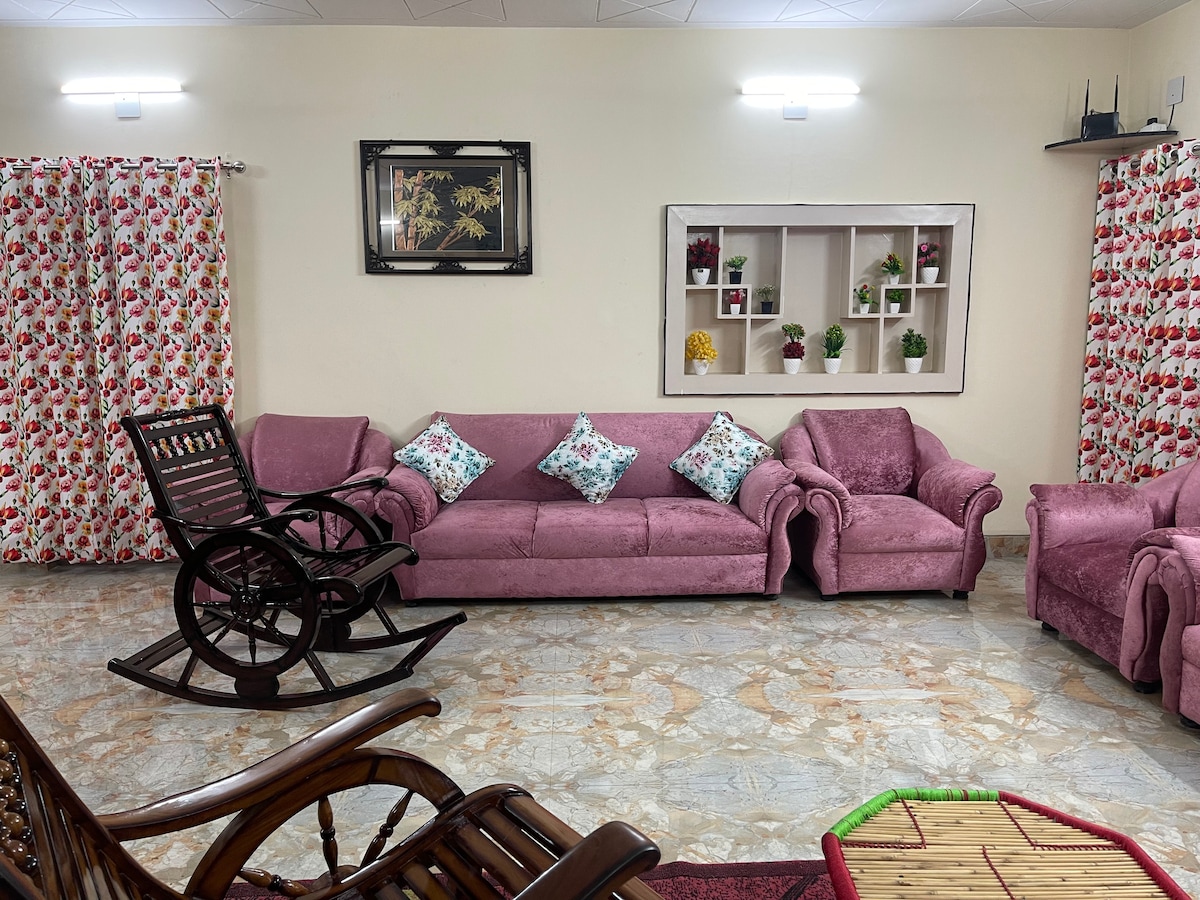 Large Sized Bedrooms With Attached Washrooms & Store Rooms. There Is A Large Living Rooms/Lounge/ Dining Table. It Has Front Facing Independent Large Balconies To Relax. The House Is Well Equipped With Kitchen Having Refrigerator, Gas Stove, Geyser & R.O Water Purifier Along With All Kitchen Essentials. The House Has Independent Approach & Independent Parking For 4 To 6 Vehicles. Laundry Service Will Be Provided. Caretakers Are Available For Any Help . Host Will Be Available For 24/7