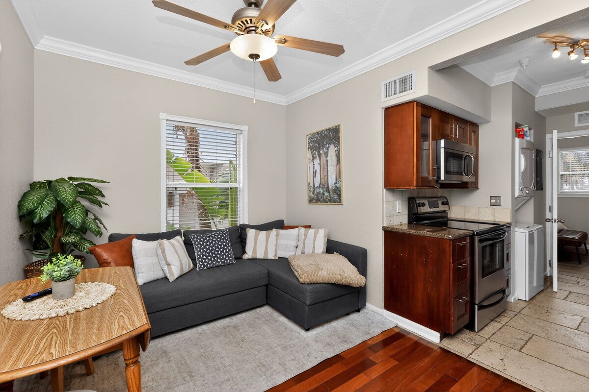 A Historic Old Northeast apartment where the past meets present in St. Petersburg, Florida. Just 1 block from downtown and 5 blocks from the waterfront, this historic boarding house will greet you with a cozy space. The world renowned muralist Sebastian Coolidge welcomes you with his piece "Front Porch Flowers" as you explore all Downtown St. Pete has to offer.