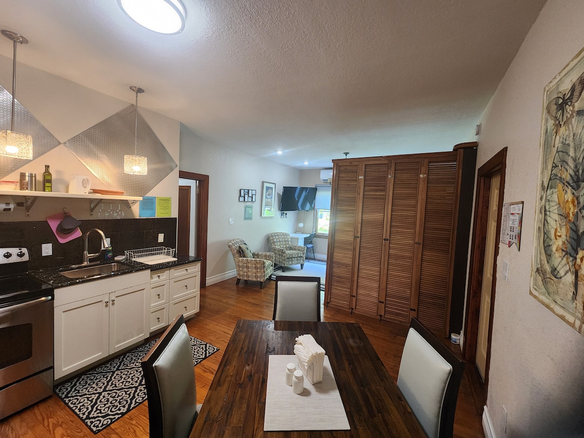 Rosa Parks Studio is spacious, comfortable & completely renovated. A great place for someone to work or relax and unwind. The unit is in St. Pete and comes with everything you need to spend some time away. King size bed, dining table with 4 chairs, desk, bathroom with shower, dedicated a/c, Wi-Fi & TV(Netflix, Hulu, Disney+ & ESPN+). Kitchen includes full size stove/oven & refrigerator, toaster oven, & coffee maker. Check out our guidebook for local favorites around the area!