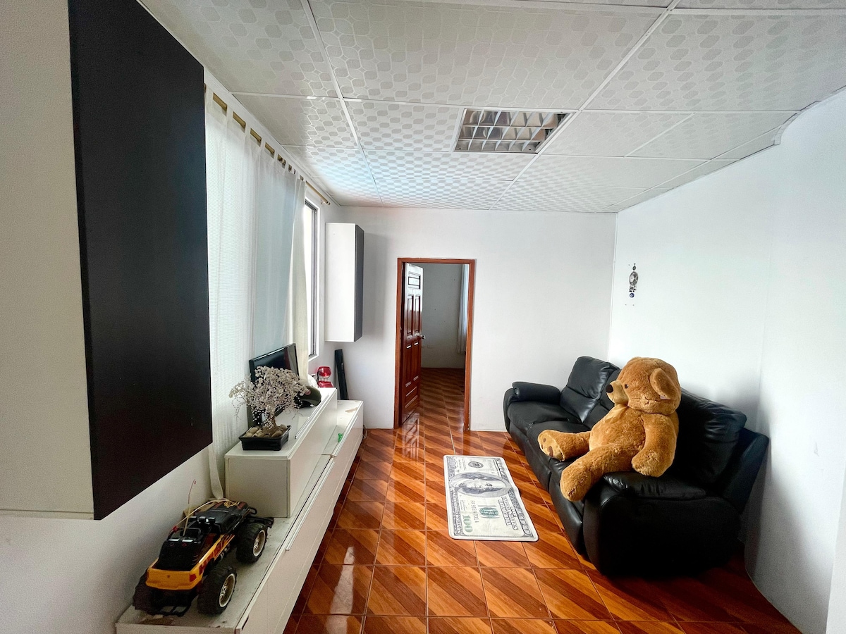 The apartment is independent, furnished, comfortable, very bright, clean, and easy to access. You can share an outdoor area of gardens and living areas under trees. The location is strategic: two blocks from Mall del Pacifico and two blocks from El Murciélago beach. Connects with Ave. Flavio Reyes, which has bars, restaurants, churches, supermarkets, pharmacies, hairdressers, and wide sidewalks for walking. The area is safe and equidistant from downtown.