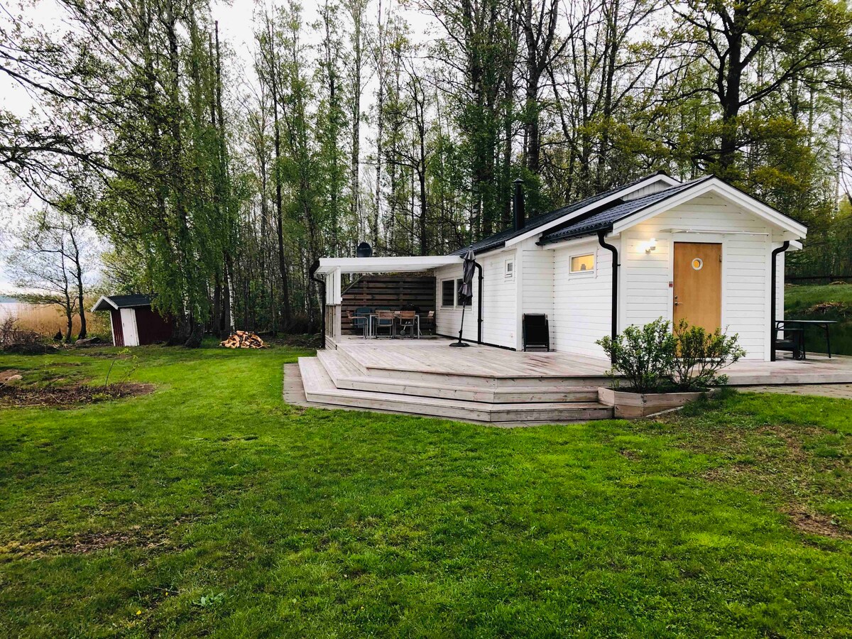 Sjöstugan - our pearl right by the lake! Private house with sleeping loft, kitchen, beautiful large room with fireplace and view of the lake. Wood-fired sauna with a dip in the lake right next door. Hot tub on the jetty - always warm. Swimming dock 5 meters outside the door. Access to a boat. If you want to buy a fishing license, contact the host. Wood for the fireplace and sauna is included. The yard is fenced all the way to the lake and our Beagle dog Vide is often loose outside. He's nice. Use of bed linens and towels, as well as cleaning, is included.