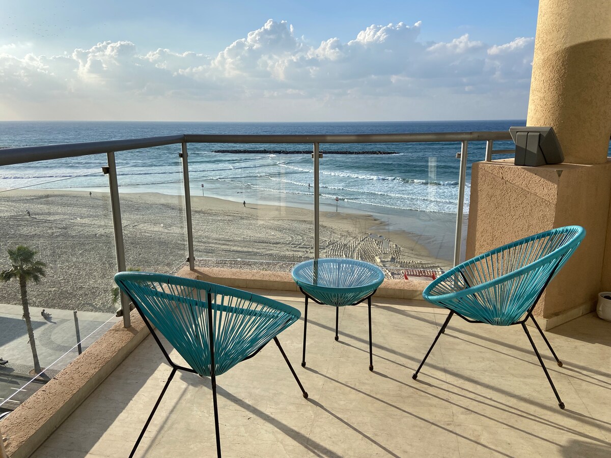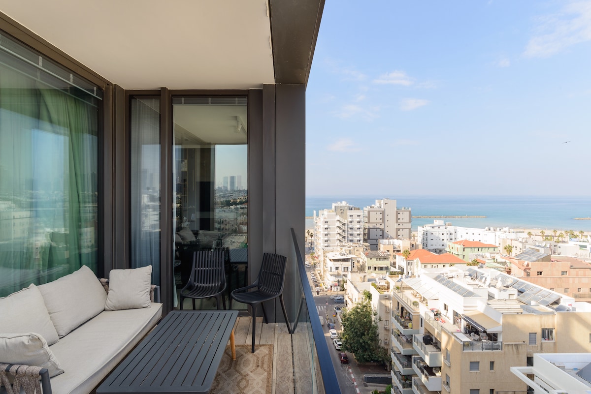 Enjoy spectacular cityscapes from the private sun balcony of this ninth floor great new tower right in the heart of Tel Aviv's best neighborhood front the Beach next the Royal Beach Hotel. This stunning 1 bedroom and 1 bathroom offer guests ideal location and sumptuous decor. There is a fantastic view. A fully equipped Kitchen with your own coffe machine. There is a Lobby with a security 24/7 Smart TV and strong WIFI. AC works perfectly. Washing machine & dryer.