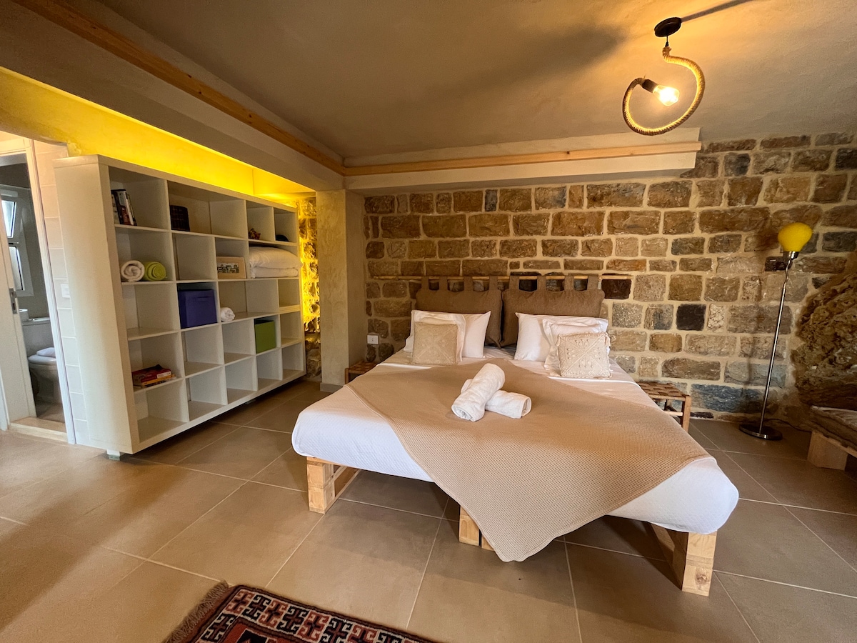 Stay in a one-of-a-kind Cave Room, carved with traditional flair and cooled by nature itself. Featuring stone walls, earthy tones, and unique ambiance, it’s perfect for guests seeking a memorable, grounding experience. Quiet, cozy, and deeply connected to the land—only at Dar El Zaytoon.