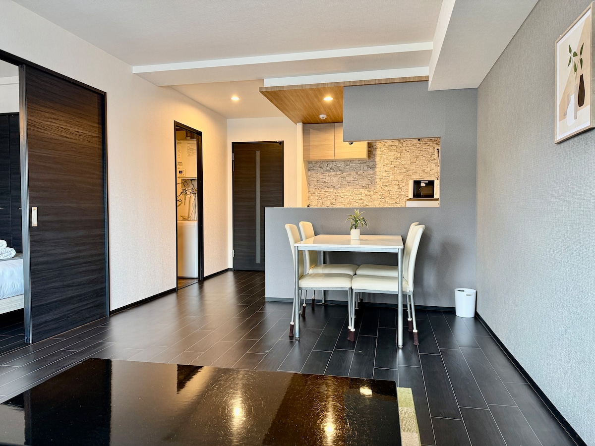 Located on the east side of Susukino, a fashionable area known as Sosei-East, and near the the Toyohira River. This is the area where you can enjoy both nature and the city. The room is on the 3rd floor, facing northwest, and is a corner room. There are chairs and tables that can be used for remote work, etc., and a corner for a little computer work. There is a coin-operated laundromat a 2-minute walk away, which is perfect for long-term stays (a washing machine and clothes drier are available)