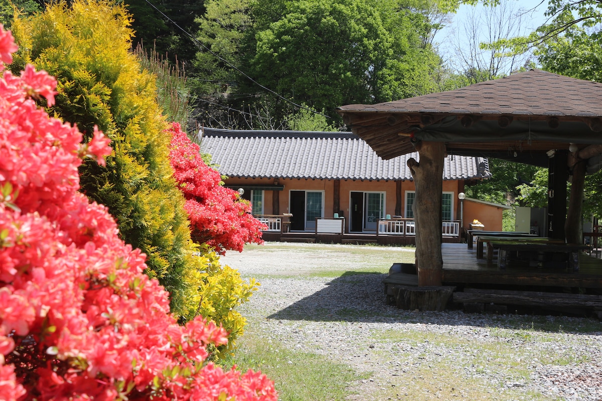 * House renewal * We are reopening of the accommodation for a comfortable trip for customers who visit Gugoksanbang Nelujae. Bedroom renewal Two queen-sized beds and a queen-sized sofa bed are installed to accommodate up to 4 family guests. Bathroom renewal Refurbished with 2 neat bathrooms and a large bathtub in a subtle cypress scented bath, we will give you a refreshing forest vacation and a warm rest. Yard renewal In the private barbecue, a kitchenette is installed. We upgraded the campfire zone. Valley Renewal We have upgraded the private valley space by installing a beautiful gazebo and sunbeds. * Welcome food provided when applying for barbecue * If you use the barbecue service, we will prepare miso stew and kimchi to accompany the barbecue food as welcome food.