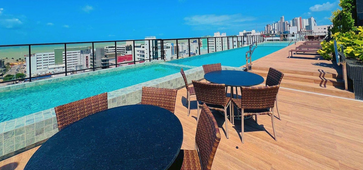 Enjoy the pool and beach in the best of Cabo Branco š 30 meters from the Cabo Branco waterfront š¤ 2 min. from Bar do Cuscuz š āļø 30 minutes from the airport š Infinity š pool to the easternmost point of the Americas Nearby š restaurants and cafeterias šø 2 air-conditioned bedrooms with double bed and 32ā TV Comfortable šø sofa bed (D45 foam) šø Bed and bath linens šø Wi-Fi šø 1 58ā Smart TV in the Living Room šø Cooktop šø Microwave šø Fridge šø Kitchen utensils šø 1 parking space šø Pay-per-use laundry
