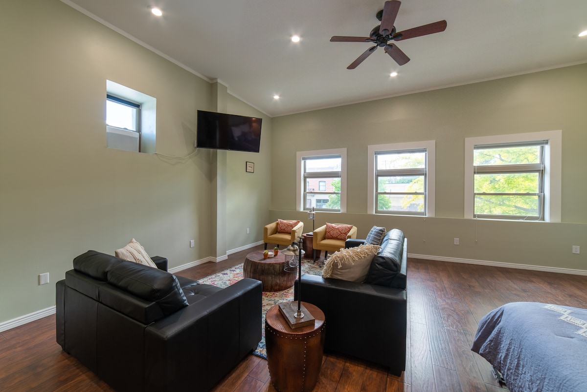 Experience the best of Buffalo in this stunning luxury penthouse, nestled in a beautifully restored historic building right on Main Street. Blending timeless charm with modern comforts, this spacious retreat sleeps 6 guests comfortably (up to 8 maximum). Ideal for a romantic getaway or a family vacation, the penthouse offers both elegance and versatility in the heart of the city. It also includes a jacuzzi tub and massage chair!