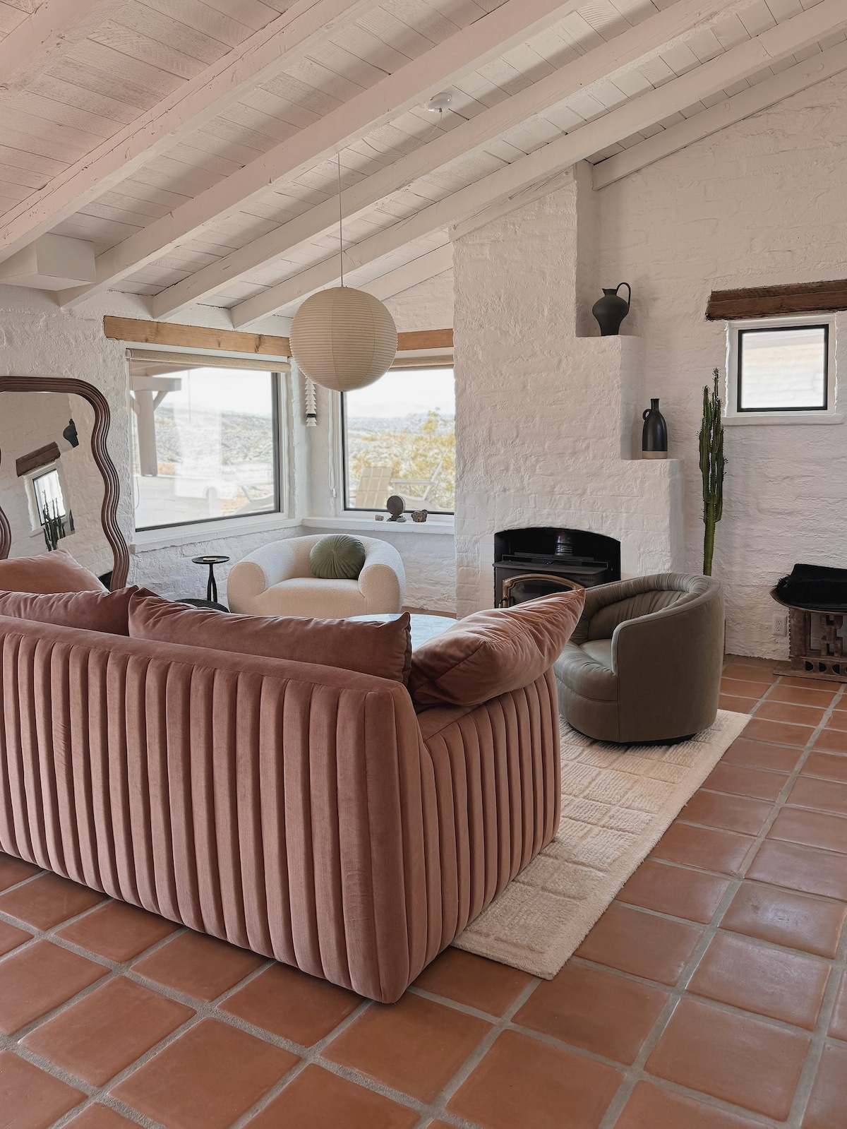 A desert retreat, Mojave Villa provides a tastefully crafted interior designed to capture the essence of the community, with outside amenities built for any occasion. Perched atop a hill in a coveted community of Joshua Tree, Mojave Villa enjoys 360° views of the Hi-Desert while having the distinct luxury of being within walking distance of the national park. The professionally designed interior evokes warm desert vibes, while the outside amenities give you all you need to entertain and relax.