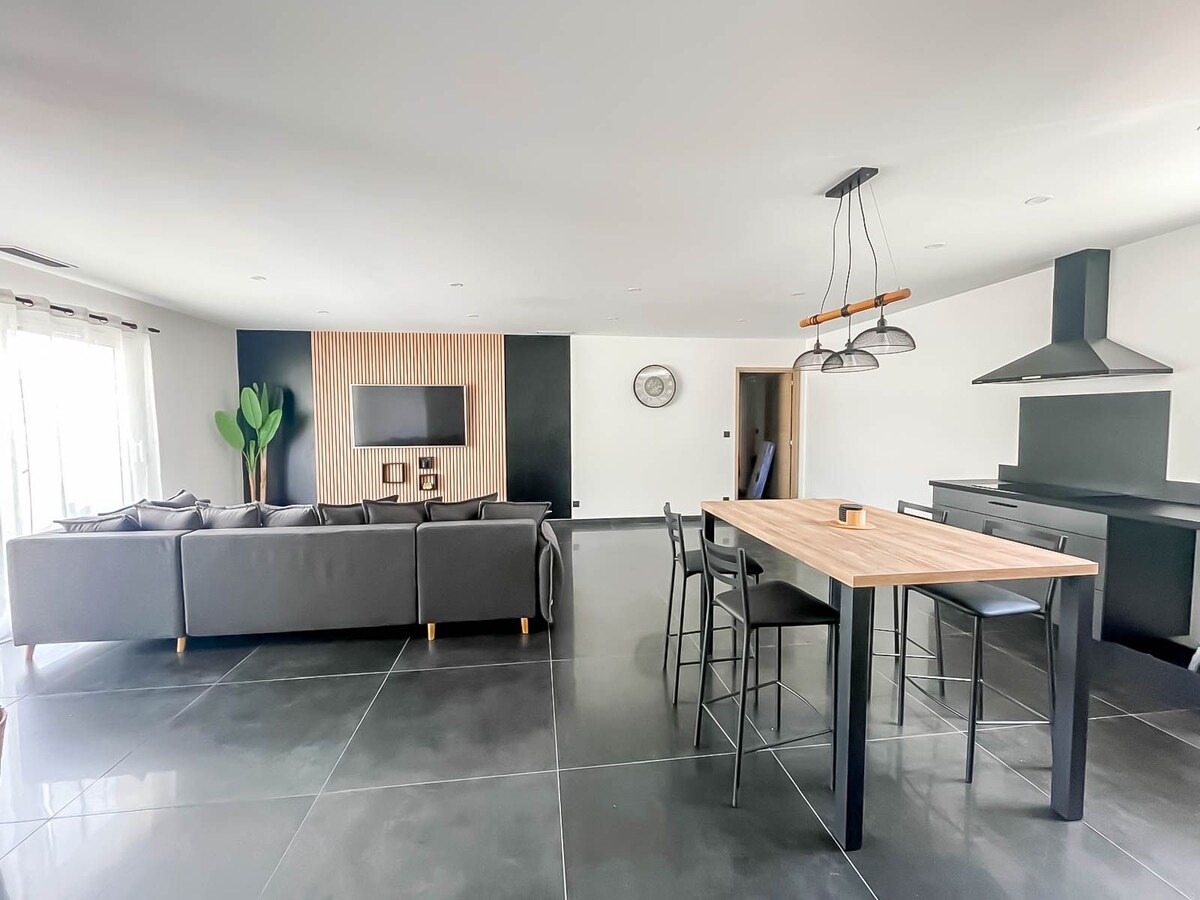 🌿 Villa climatisée L’Olympe – 110 m² Maison confortable pouvant accueillir jusqu’à 10 personnes (8 ADULTES MAX). 🏊 Piscine privée et chauffée 8 × 4 m, idéale pour se détendre. 🌳 Terrain clos de 800 m², 🎯 pétanque et 🎯 fléchettes pour des moments conviviaux. 🍇 Située dans une résidence paisible près des vignes, parfaite pour se ressourcer. 📍 Rivière à 1 km et commerces à 1,5 km. ✨ Cadre idéal pour des vacances en famille ou entre amis.