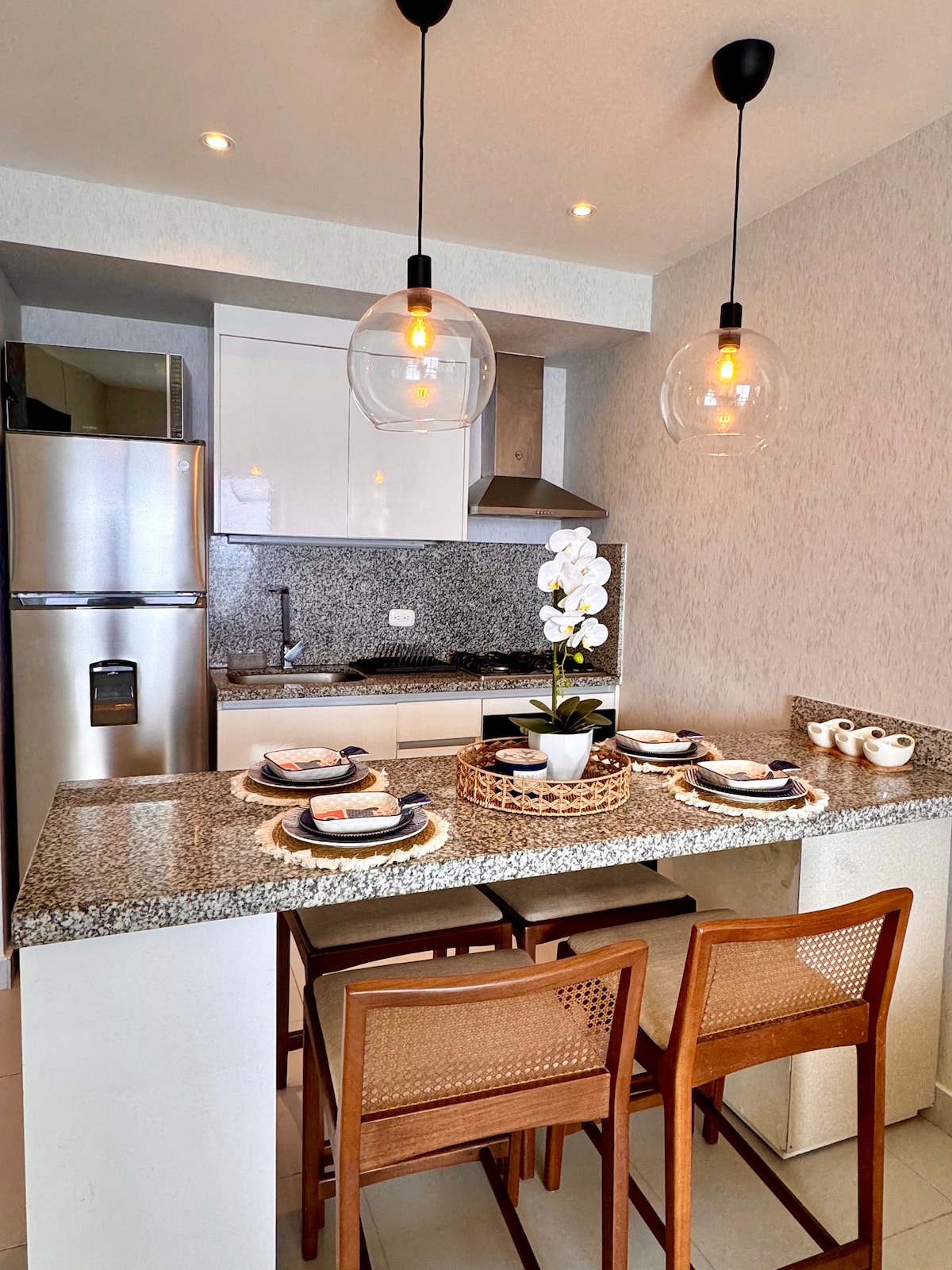 It has two comfortable rooms, a comfortable queen bed in the main room as well as having a bathroom and a spacious closet, the second room with two soft full beds and a spacious closet. a second bathroom, spacious, comfortable and beautiful living room, kitchen equipped with useful and necessary utensils, washing and drying area, full house air conditioner, balcony that allows us to enjoy beautiful mornings and fantastic sunsets.
