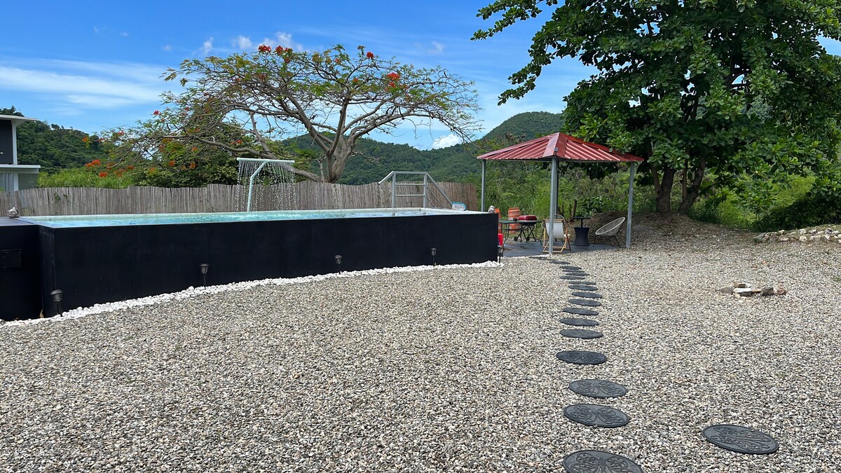 Enjoy the lovely setting of this romantic spot in nature and discover the serenity in our cozy farmhouse. This private villa wraps you in a lovely and peaceful environment with majestic mountains all around. The house is fully equipped for your convenience. It is ideal for couples in need of a nice getaway or just reconnect with yourself and nature. It is on a gorgeous tropical private 3 acre estate with private pool. Located in Villalba, Puerto Rico, just 50 minutes from Ponce's Airport.