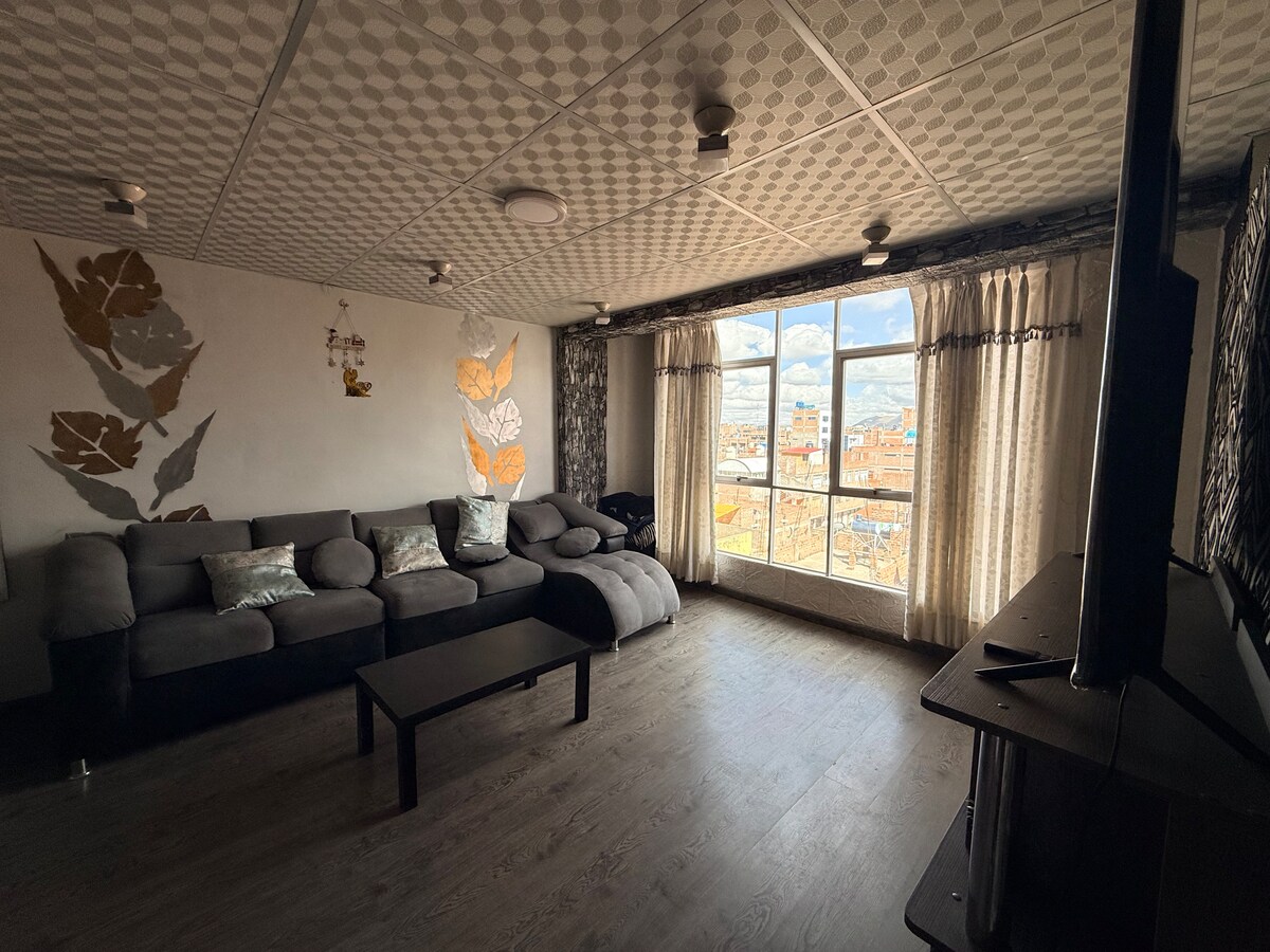 Apartment on the second floor, 5 blocks from the Inca Manco Capac airport in Juliaca, quiet area, has a furnished kitchen with dining room, living room, two bedrooms with beds for 2 people and a garage with an additional payment.