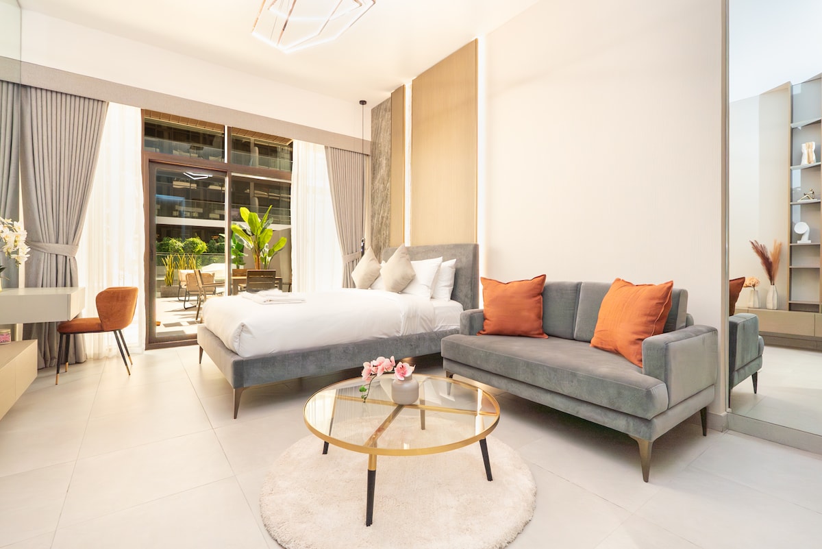 Welcome to your bright and modern 1-bedroom apartment in the heart of Jumeirah Village Circle – perfect for couples, solo travelers, business guests, and even small families. Thoughtfully furnished and filled with natural light, this home offers everything you need for a comfortable and relaxing stay. Whether you're visiting for a few days or planning a longer stay, you’ll feel right at home. Kick back and relax in this calm, stylish space.
