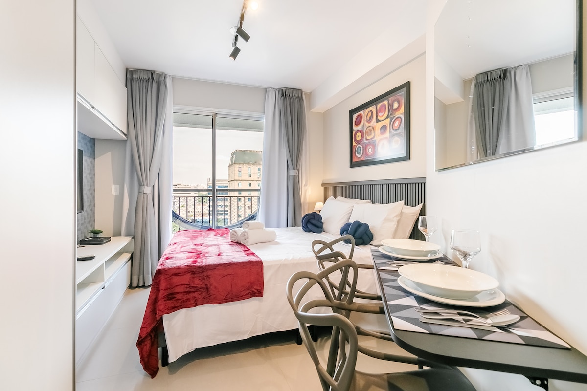!! ATTENTION !! We do not offer bedding, bath linen and toiletries * Common Areas (pool, sauna and gym) may have use restricted by the Building without prior notice. Confirm that use is allowed at front desk* The apartment is modern, for 2 people. Great environment for working and resting. The location provides a very large amenity because it contains all kinds of shops close by.