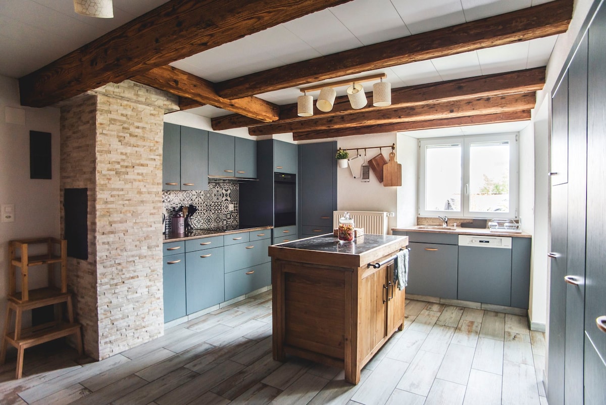 While traveling abroad, we rent out our lovely home. Old family farm, over a hundred years old, renovated with love and our little hands, well equipped, spacious and comfortable, it will immediately make you feel at home! Its large 80 m2 terrace and 1000 m2 plot offer you a beautiful outdoor space. Close to all amenities and the train station, 10 minutes from the beautiful town of Saint-Ursanne, this house is an ideal starting point for your vacation in the Jura!