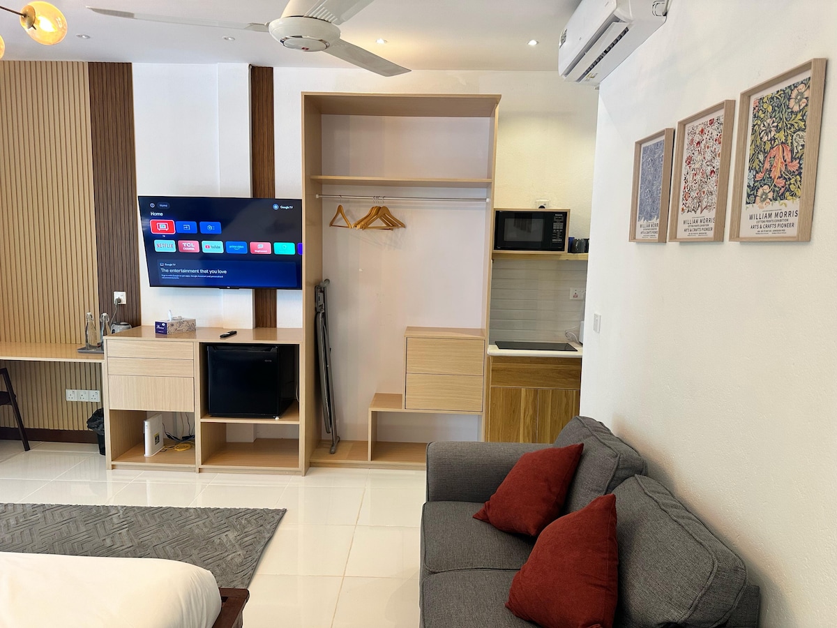 Keep it simple at this peaceful and centrally-located place. This is a Urban location with a lot of interaction with local population. good for exploring the local lifestyle. At five minutes walk to the beach. where you could discover local style food huts which becomes active after 4pm in the evening. Down stairs in ground floor convenient store with variety of necessary items. Close by 2 minutes walk supermarket and shops and food outlets.