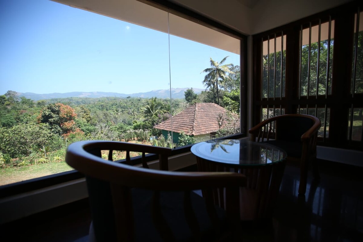 "Traditional nalukettu fusioned with colonial architecture. Elegently furnished with early eighteenth century antique foldable wall benches overlooking the courtyard,lit lup by Belgian stained glass windows.With meticulously designed glass wall that captures the essence of the breath taking Brahmagiri Ranges ,we present our mountain view deluxe bed rooms .Rooms with King size bed,32"LED T.V,Tea/coffee maker,Free parking Facilities ,24 hour hot water ,Camp fire and complementary hotel aminities"