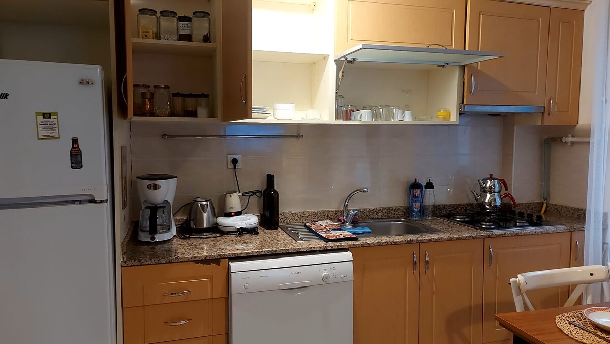 You can enjoy the view on the terrace of our apartment located on the Kadıköy pier. The last stop of the Havabus buses coming from Istanbul and Sabiha Gökçen Airports is 50 meters from the building. Ferries departing from Kadıköy to Eminönü, Karaköy and Beşiktaş and the Islands, as well as the Metro and Marmaray (train) are within a 10-minute walk. There are many grocery stores, cafes, etc. in the vicinity. The apartment has a double bed and an L-shaped sofa in the living room. The building has been completely renovated very recently.