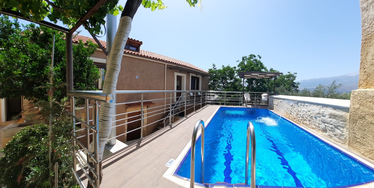 Stone Villa Halepa panoramic view,big pool &garden