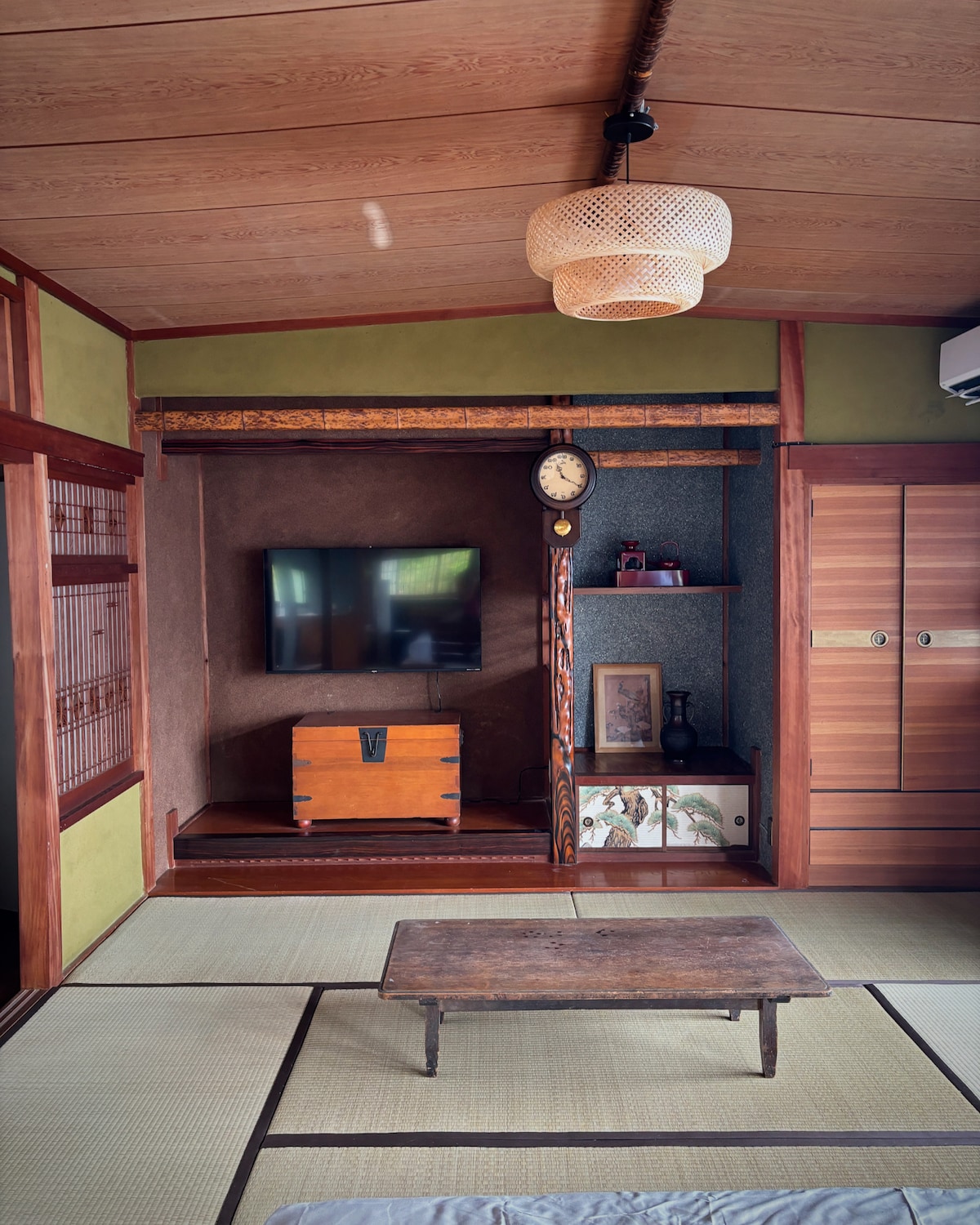 A Hidden Gem in Central Amami Relax in a bright, cozy space filled with natural light and greenery—your peaceful hideaway in the heart of the city. This stylish room features a semi-double bed, desk, Wi-Fi, A/C, TV, mini kitchen, and microwave, perfect for work or long stays. Just minutes from restaurants, supermarkets, bus stops, and parking. Enjoy both local island life and modern comfort. Ideal for solo travelers, couples, or friends seeking a calm, convenient stay.