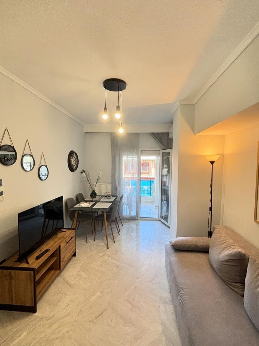Luxurious apartment 60sq.m in the area of Kalamaria. Ideal for families and couples Closed parking space in the underground garage of the building. Ultra fast internet FIBER 510 Mbps. TV 55'' SAMSUNG 4K Ultra HD TV 43'' 4K QLED Free Netflix, A / C with ionizer in all areas. Fully equipped kitchen with automatic operation. Washing machine. King size bed, Sofa bed for 2 people, Sofa bed for 1 person (2 children), Work area, Gas heating with hot water 24 hours.