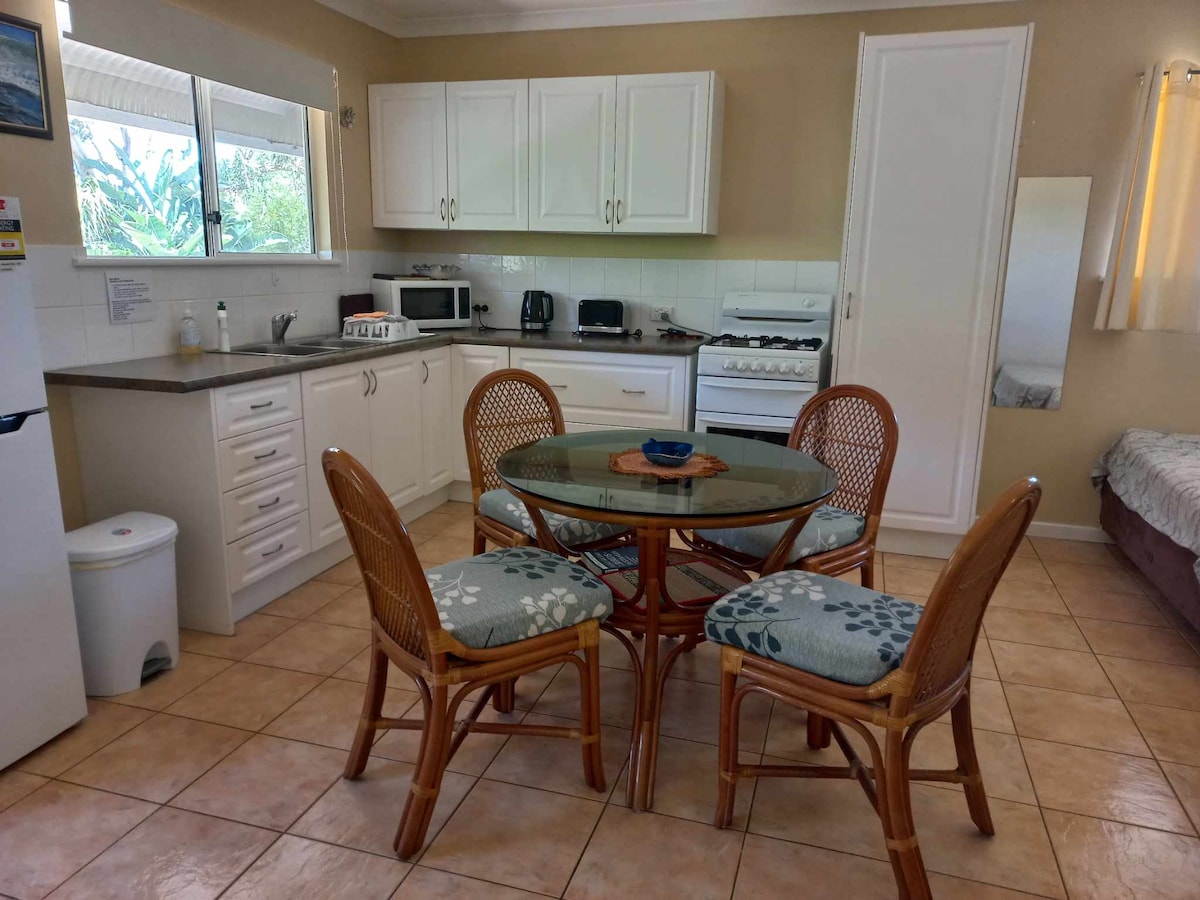 Escape to Starfish Retreat Kalbarri! 🌿☀️ Enjoy a private stay with a queen-size bed, a fully equipped bathroom with shower & bath, and a cozy living area with a SMART TV, and dining for two. The kitchenette includes a cooktop/mini oven, microwave, bar fridge, kettle, toaster, and essentials. ✨ FREE Wi-Fi & Continental Breakfast on Arrival 🏊♂️ Shared Pool | 🏖 15-min Walk to Beach Couples Only