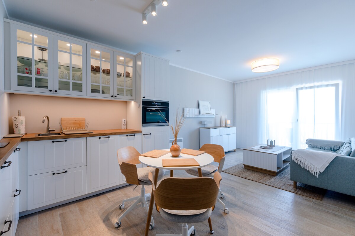Escape the everyday? Slow down? ☞ This way ↓ ・Tastefully and warmly furnished apartment ・Right by the lake ・Away from the hustle and bustle ・Yet only 500 meters to the Baltic Sea ・Enhanced comfort with 2 separate beds ・View of the lagoon's water ・Fully equipped kitchen – perfect for passionate cooks ・The best service with German support Curious? → Check out our photos and book your getaway by the water. Relax, enjoy, and recharge.