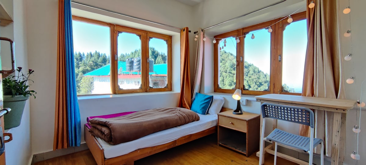 The Space Above BnB is a thoughtfully decorated home to feature art, coffee, and mindful living to create the peaceful environment for a relaxing stay. Located right above The Other Space Cafe in Jogiwara Village, this home comes equipped with all the modern amenities one needs. Guests have a big open terrace garden to enjoy the view of the Dhauladhar mountain range, a dedicated work area with fast internet, and a cafe right below which offers all guests a complimentary breakfast everyday.