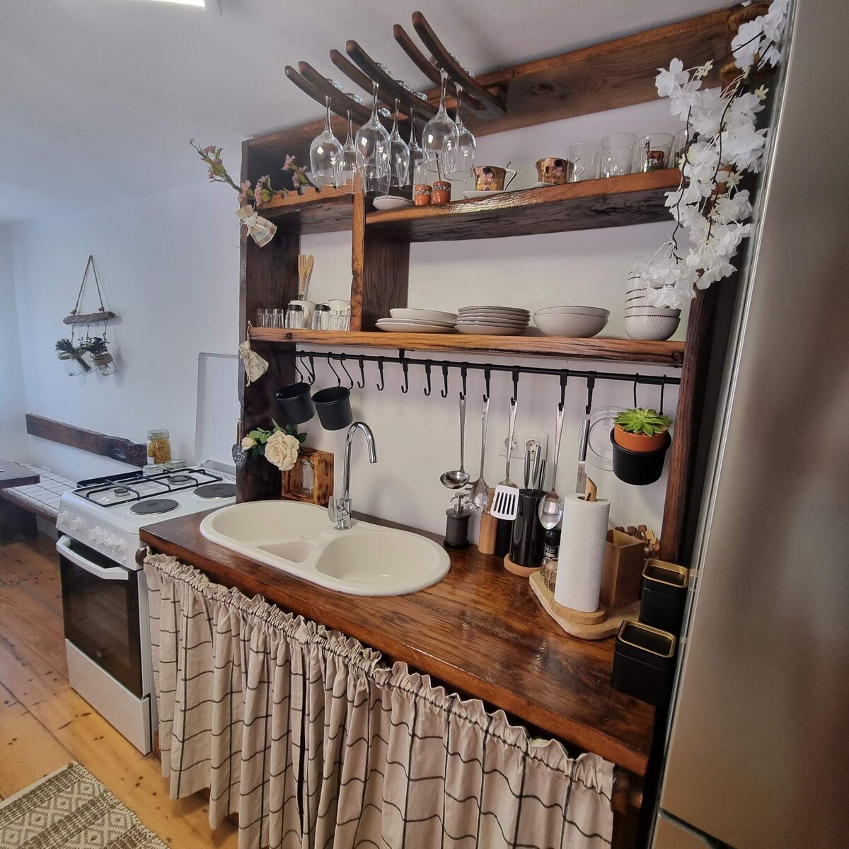 A small house that will fully satisfy even the most demanding visitors. In the house you will find everything you need for a carefree stay, and the river and the beautiful waterfall are a few minutes' walk away (300m). The house is located in a very quiet place. The house from the upper balcony overlooks the river and the waterfall. The terrace is shared with the apartment next door, but it is large enough for a comfortable stay of up to 8 people at a large table. Since it is a double facility, it is also possible to rent the adjacent apartment (5 people).