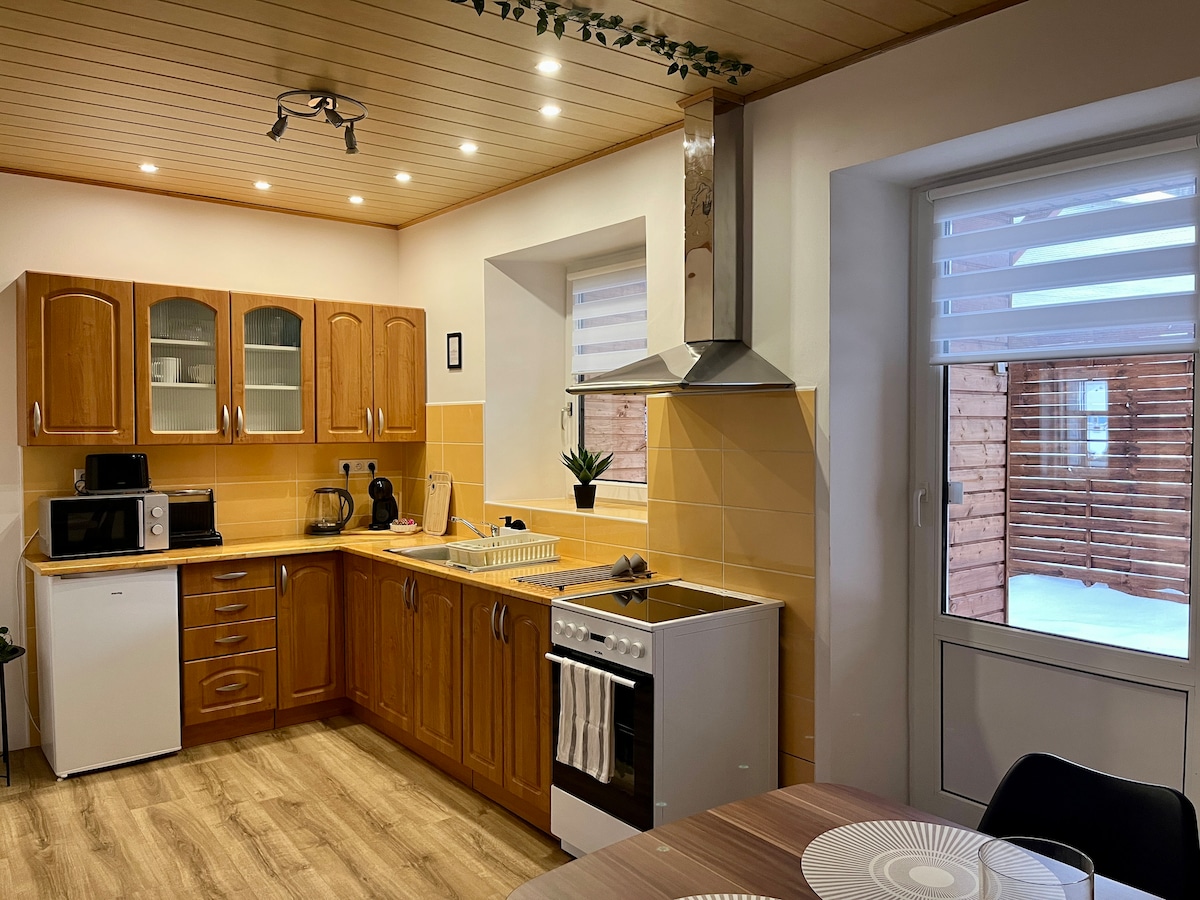 🏔️ Enjoy your stay in cozy apartment in a family house surrounded by stunning nature. The perfect spot for mountain lovers, skiing enthusiasts, and those seeking relaxation! 🏠 The apartment is located in a mountain town, just a few minutes’ drive from the popular Klínovec ski resort. In the area, you’ll find hiking trails, cross-country ski tracks, and cycling routes. 🎿 Perfect for: Winter sports enthusiasts, families, or couples looking for a peaceful getaway.