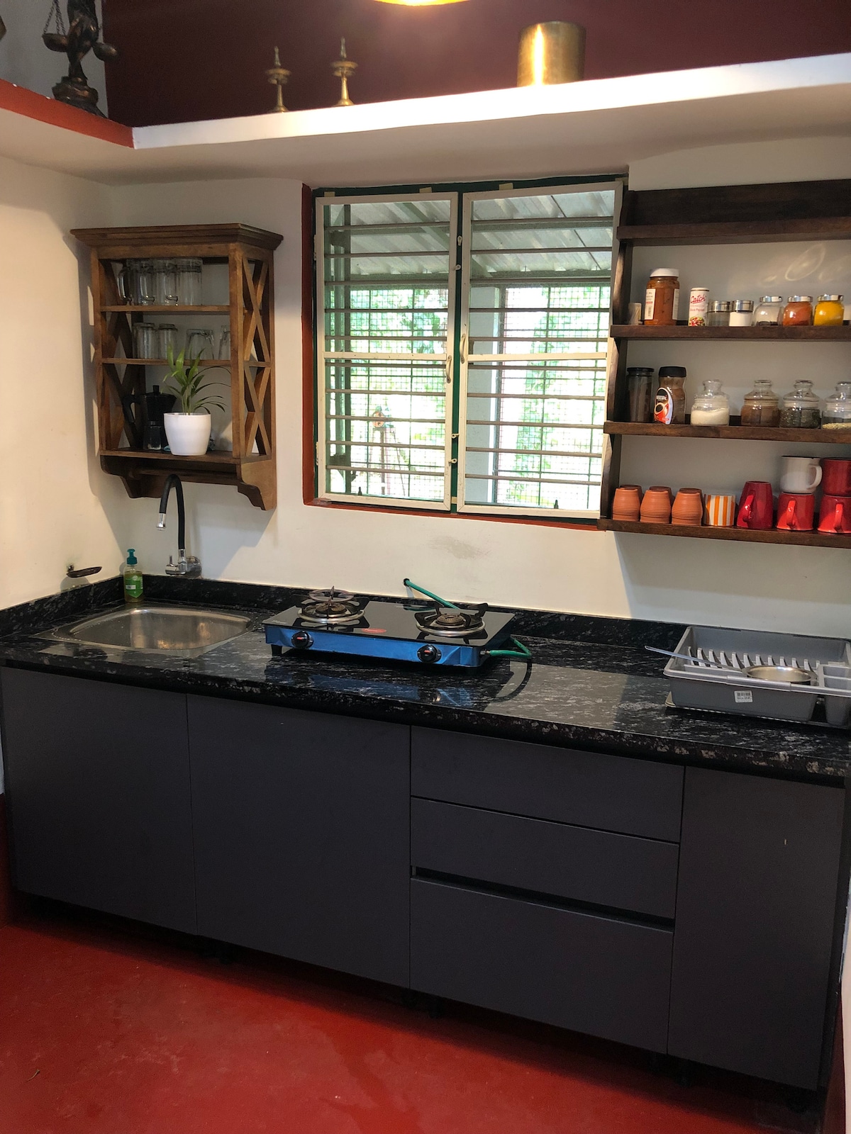 A rustic yet comfortable farmstay designed to be close to nature where simplicity meets thoughtful hospitality. Surrounded by greenery, our farm is a quiet retreat where nature sets the pace. Wake up to birdsong, watch chickens roam freely and unwind in a simple, soulful rural setting. Breakfast is included. Lunch and dinner can be arranged on request at an additional charge with prior notice. Meals are prepared in-house inspired by authentic Kerala recipes passed down from the hosts' mother.