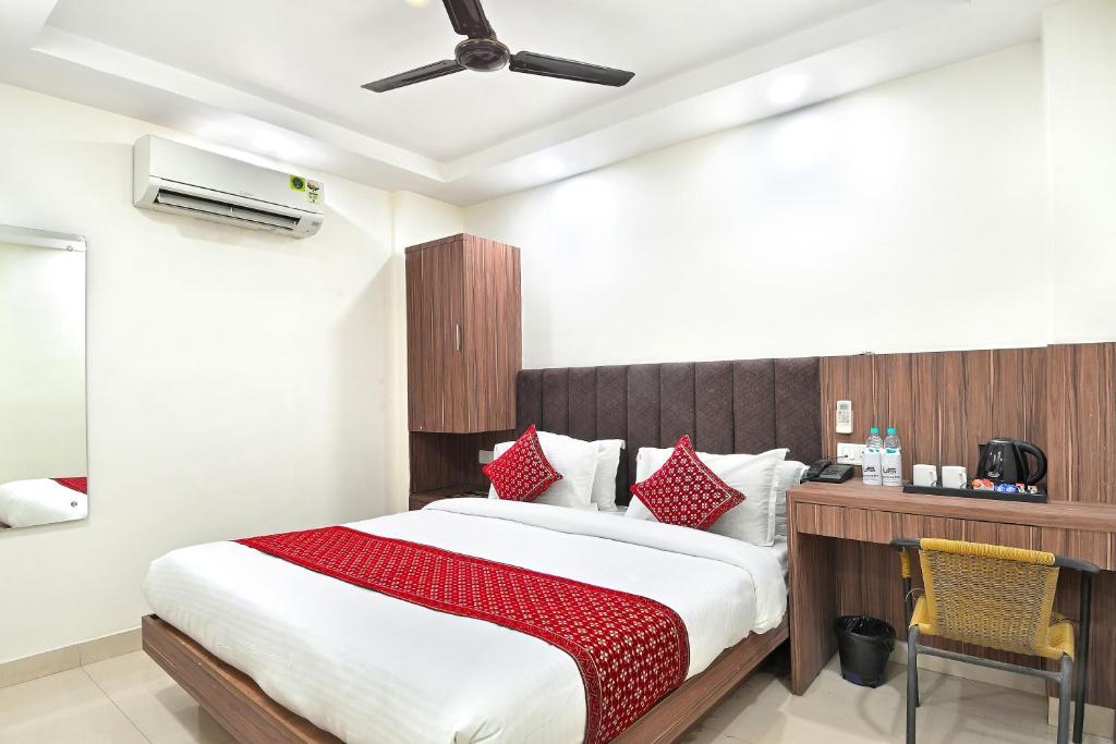 ◆Comfortable & stylish hotel room perfect for solo travelers or small groups. ◆Easy access to : ✔Sir Ganga Ram City Hospital – 500 meters ✔Apollo Spectra Hospitals – 700 meters ✔Karol Bagh Market & Metro Station – 1 km ✔Indira Gandhi International Airport – 19.9 km ◆Room includes a TV, mini fridge, and ensuite bathroom. ◆On-site restaurant with ample seating & air-conditioning. ◆Welcoming reception area with plush sofas, TV & lift access.