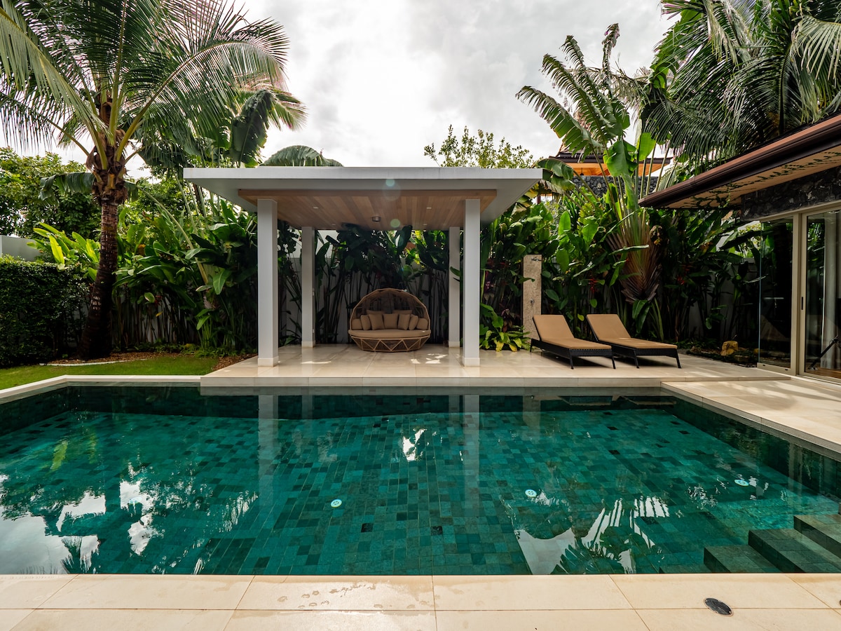 Luxury villa with modern design and private pool, perfectly suited for your stay with family or friends. Located in a peaceful area, close to all amenities, and the beaches of Rawai and Naiharn, this sumptuous villa has a swimming pool entirely covered with marble, and equipped with a saltwater filtration system. Inside, you will have 140 m2 divided into a large living room open to a fully equipped kitchen, as well as 3 bedrooms with private bathroom.
