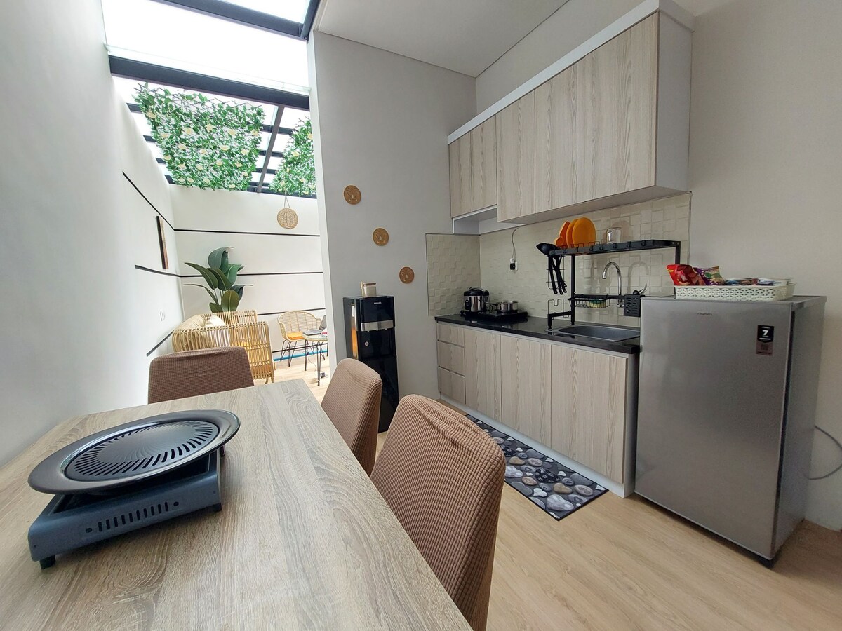 Breezia Villa is a compact but complete mezzanine building type. This villa is equipped with facilities such as washing machine, fully equipped kitchen, and swimming pool. Located in a housing that tends to be quiet and still beautiful, it will be perfect for those of you who want to take a break from the crowd and want to have quality time with your loved ones. Although far from the crowd, this villa is close to the toll entrance so the location is very strategic