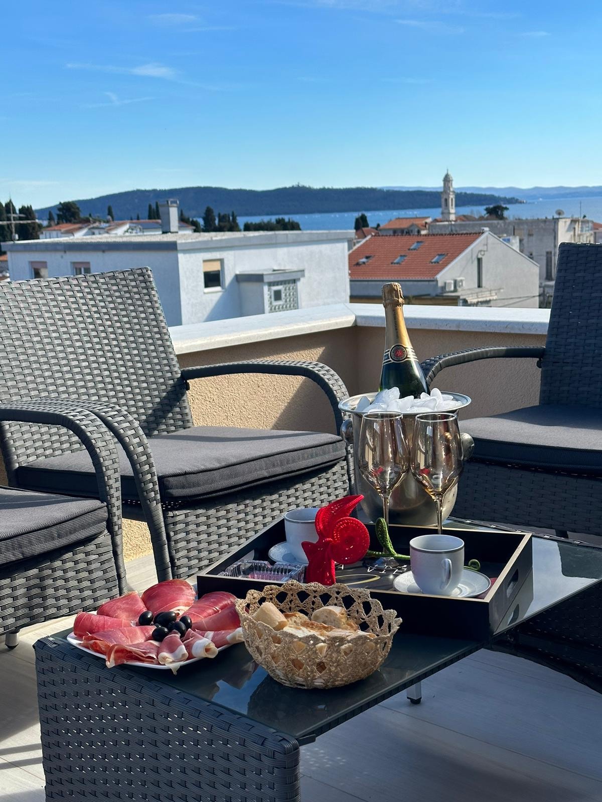 VILLA DELUXE ROOFTOP 6+2 KAŠTEL LUKŠIC 20 METERS FROM THE SEA 2 BEDROOMS WITH KING SIZED BEDS 1 BEDROOMS WITH TWO SINGLE BEDS EVERY BEDROOM HAS IT OWN A/C. BIG KITCHEN AND DINING ROOM MAIN BEDROOM HAS IT OWN TOILLETE. 2 ADDITIONAL TOILLETES. TWO BALCONIES WITH PERFECT VIEW ON THE SEA(safety board for kids). NETFLIX, Wi-Fi, 3 BEACHES, RESTAURANTS, MARKET WITHIN 1 MINUTE WALKING. BIG PUBLIC PARKING 30 METERS NEXT TO APARTMENT.