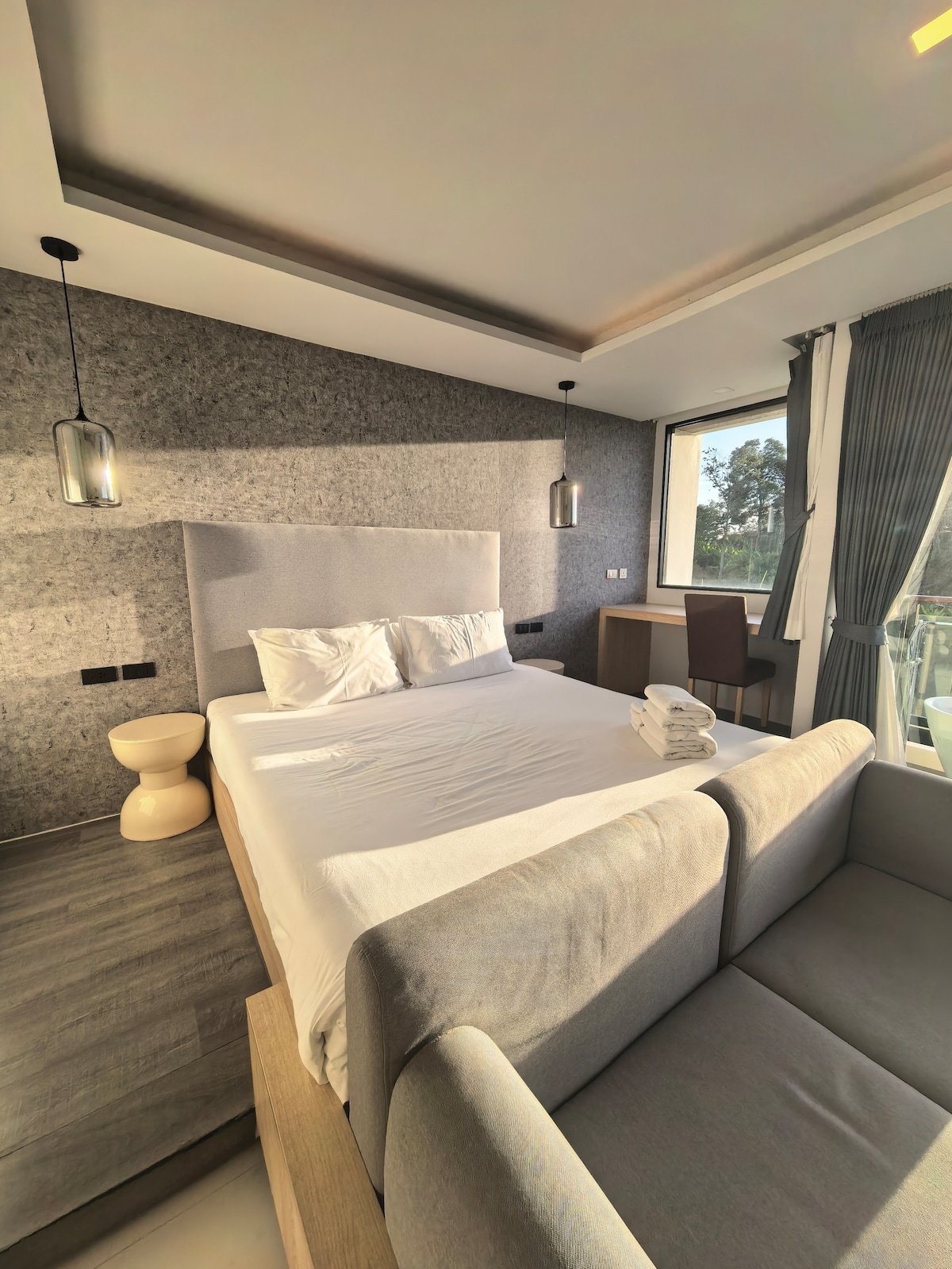High Tide Suite offers an ocean view & stay 3-4 guests, 5-minute walk to the beach. Spacious suites boast floor-to-ceiling windows that open onto private balconies, a well-equipped kitchenette, and a large bathroom with a bathtub. After a day at the beach, relax in steam room & sauna include a games room within the building. Included: Utility Fee / Required refundable security deposit 5,000THB cash upon check in & refund upon check out (If no any damage) Every 7 days cleaning & change linen.