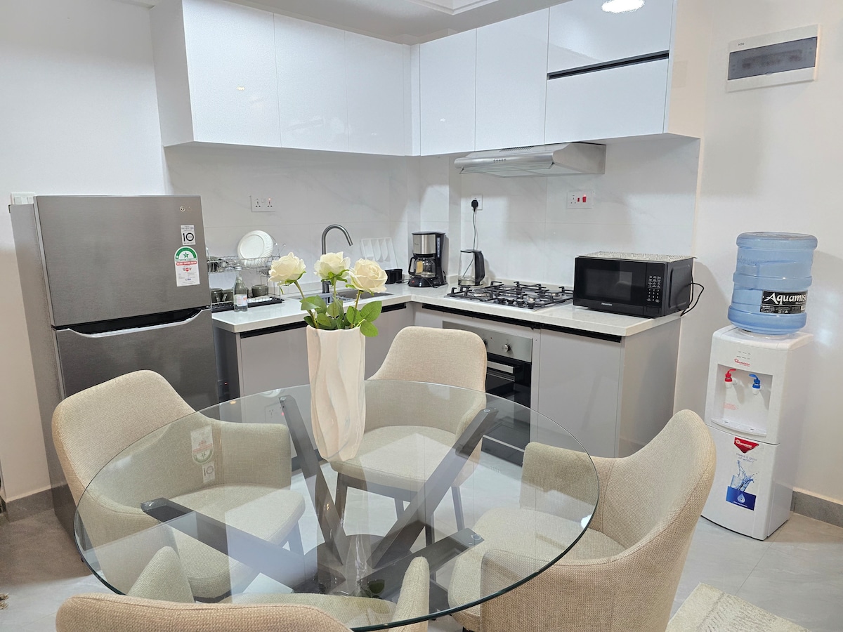 A calm, stylish escape in the heart of Kilimani. This thoughtfully designed apartment blends warm earthy tones, soft lighting, and natural textures to create a cozy, modern stay. Relax in the sunlit living room with its rust-toned sofa and curated art, enjoy meals in the sleek dining area, or cook in the fully equipped kitchen. At night, unwind in a serene bedroom. Perfect for solo travelers, couples, or families seeking comfort, style, and convenience.